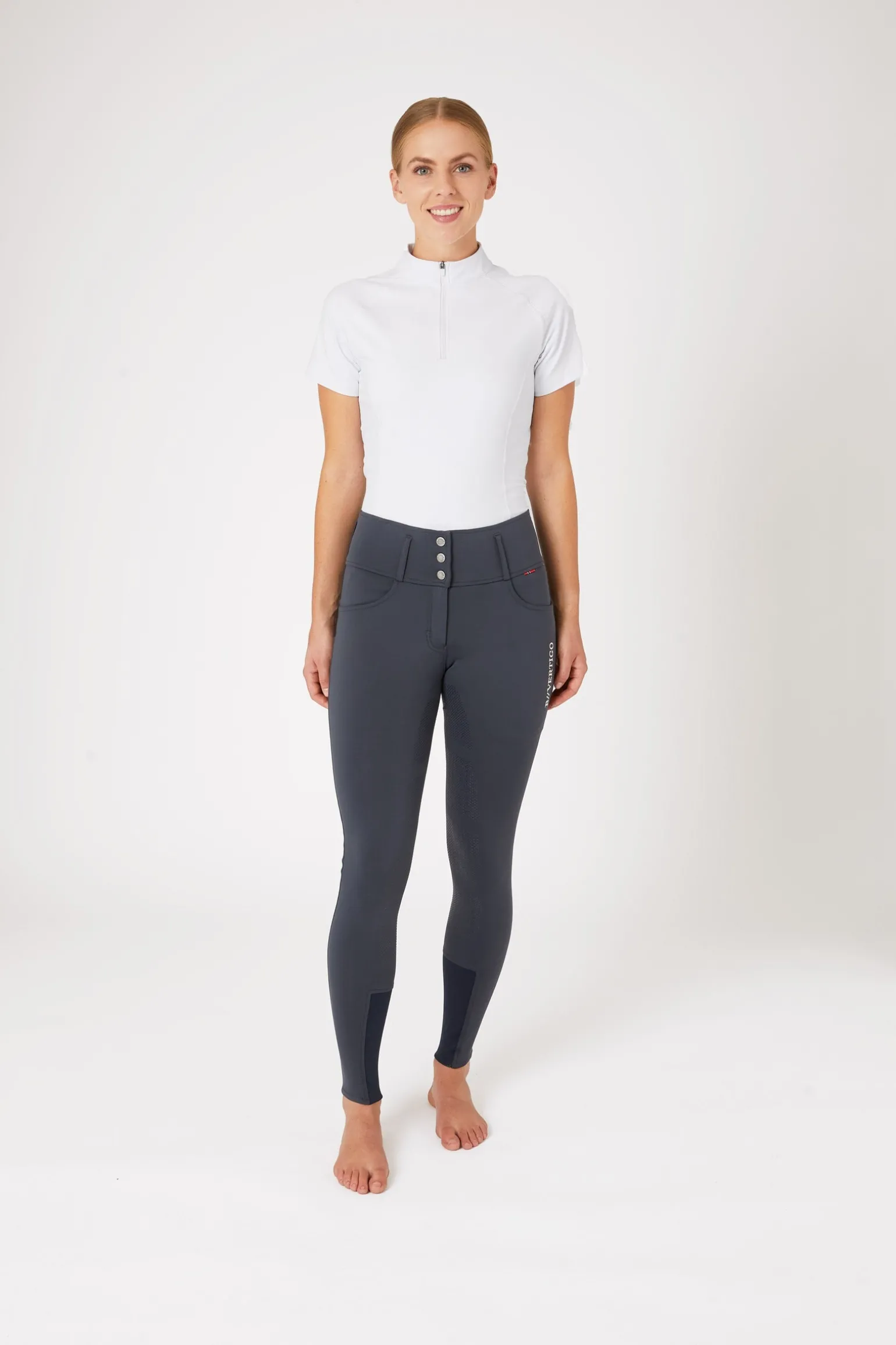 Unsere B Vertigo Meghan Reithose ist mit einem hohen Bund ausgestattet, der sie an ihrem Platz hält. Der Silikonvollbesatz hält dich sicher im Sattel. Elastische Beinabschlüsse passen perfekt unter deine Lieblingsstiefel. Die klassischen Farben lassen sich leicht mit deinen Reit-Oberteilen kombinieren. Zwei tiefe Fronttaschen bewahren dein Handy sicher auf. Auch als Version mit Kniebesatz erhältlich.