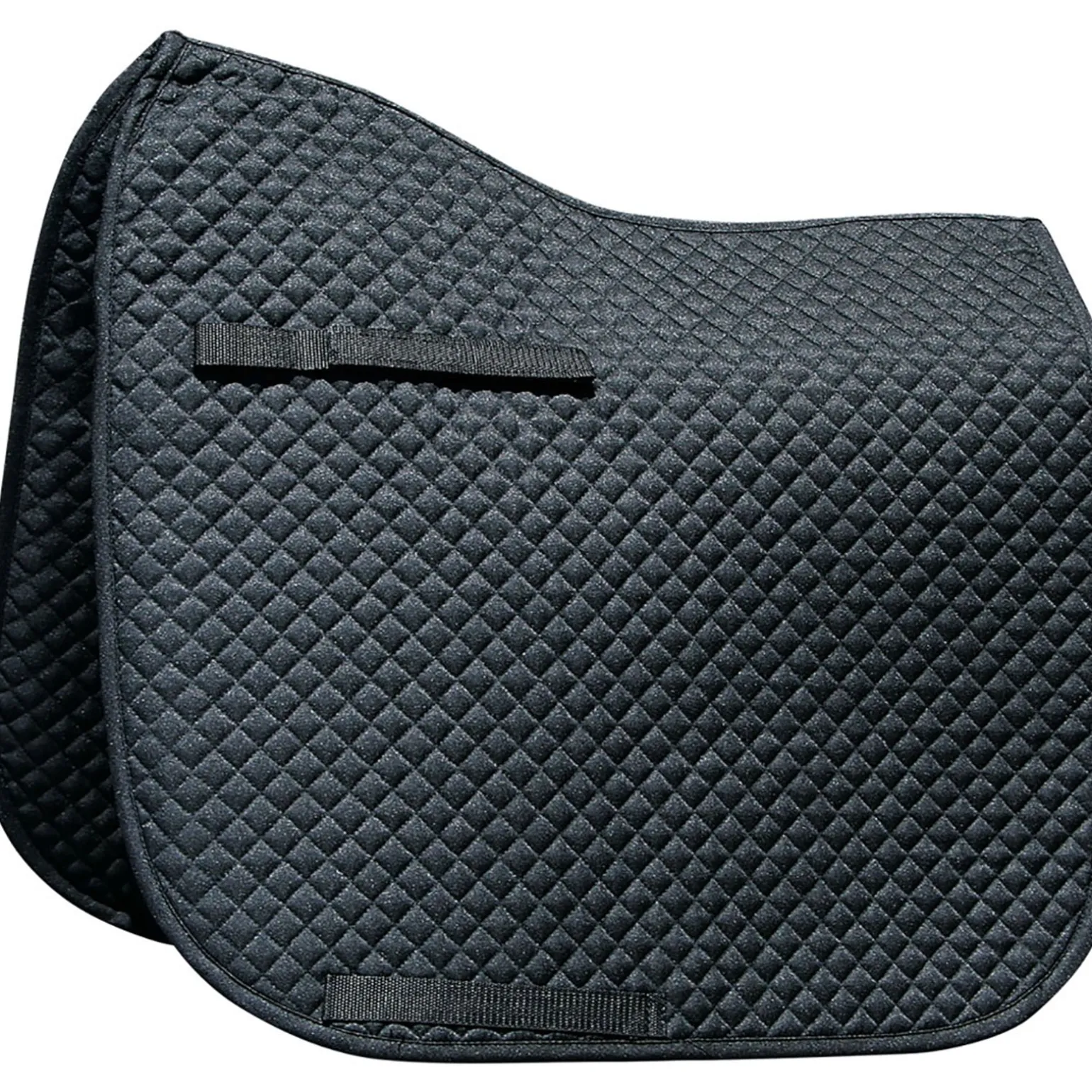 Saddlepad with moisture wicking lining. Diagonal stitching 15mm wide. High density foam/ polyfill filling. hook and loop fastener girth straps.