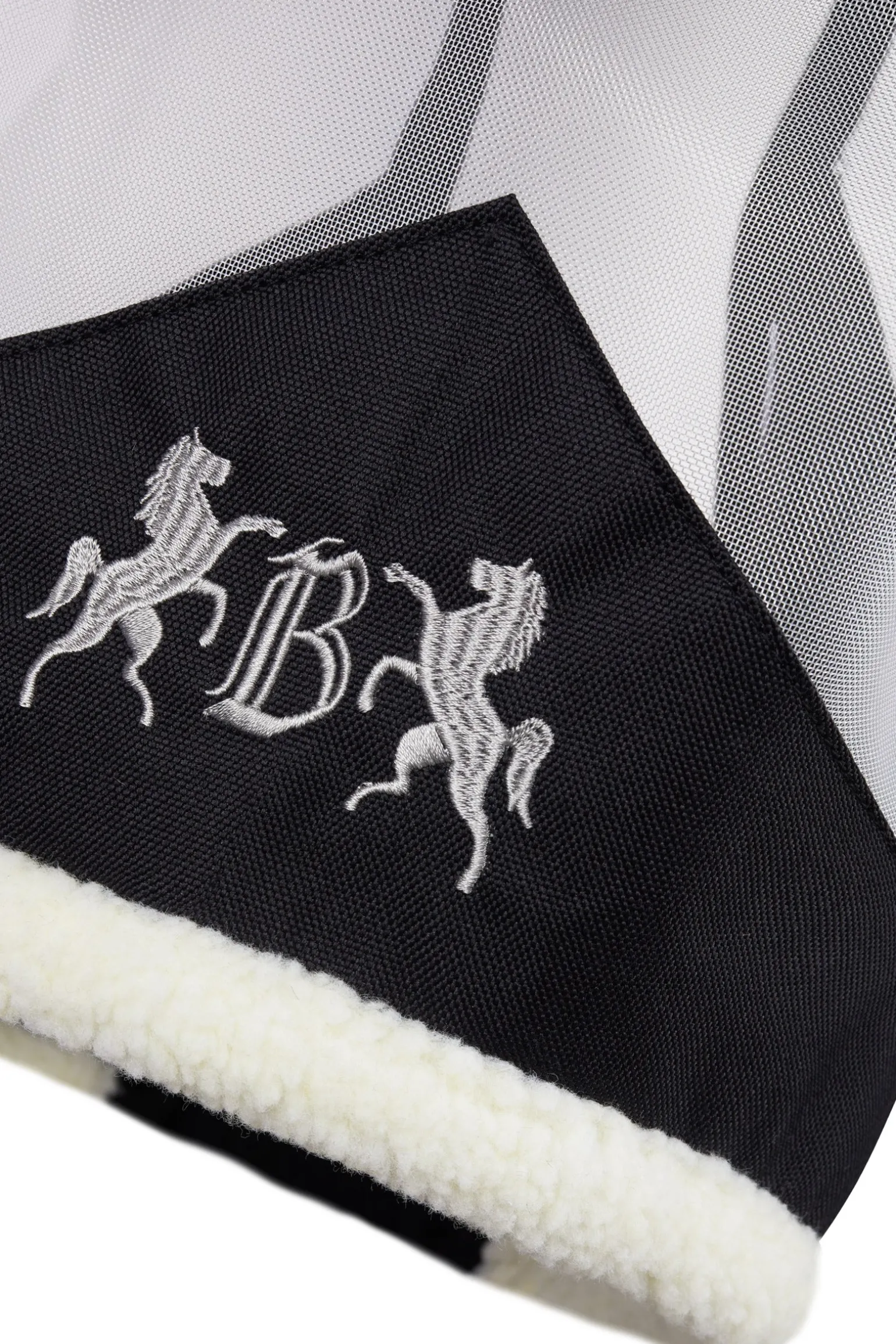 Die B Vertigo Delux Fliegenmaske ist aus weichem Mesh an den Ohren und strapazierfähigem Material an den Augen gefertigt. Kuscheliges Kunstfell an Kopf und Nase sorgt für zusätzlichen Komfort, und Fleece verhindert Scheuerstellen. Der Klettverschluss schließt sicher. B Vertigo-Logodetails sorgen für einen luxuriösen Look. Kombiniere sie mit unserer B Vertigo Delux Fliegendecke, um ein komplettes Outfit zu erhalten.