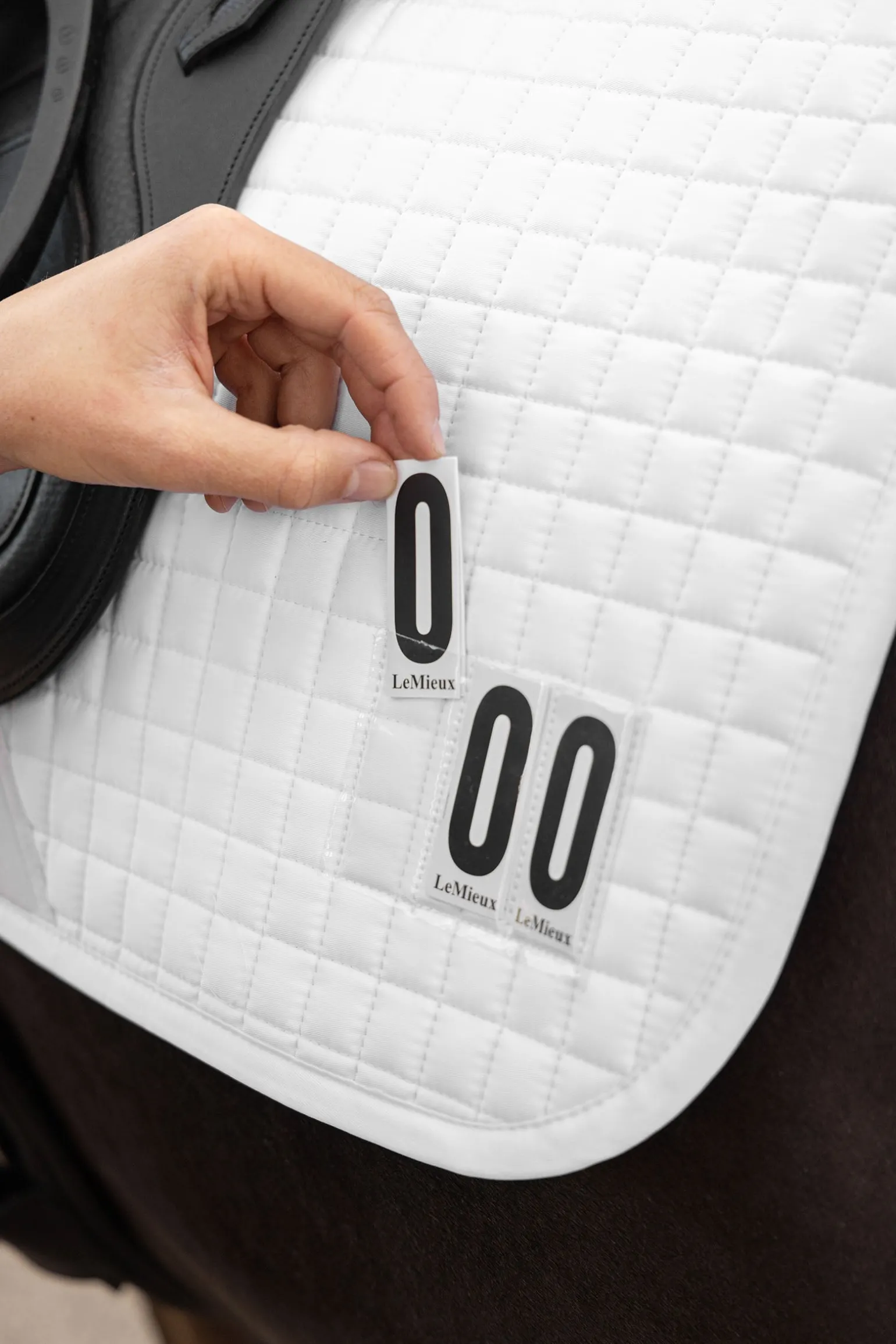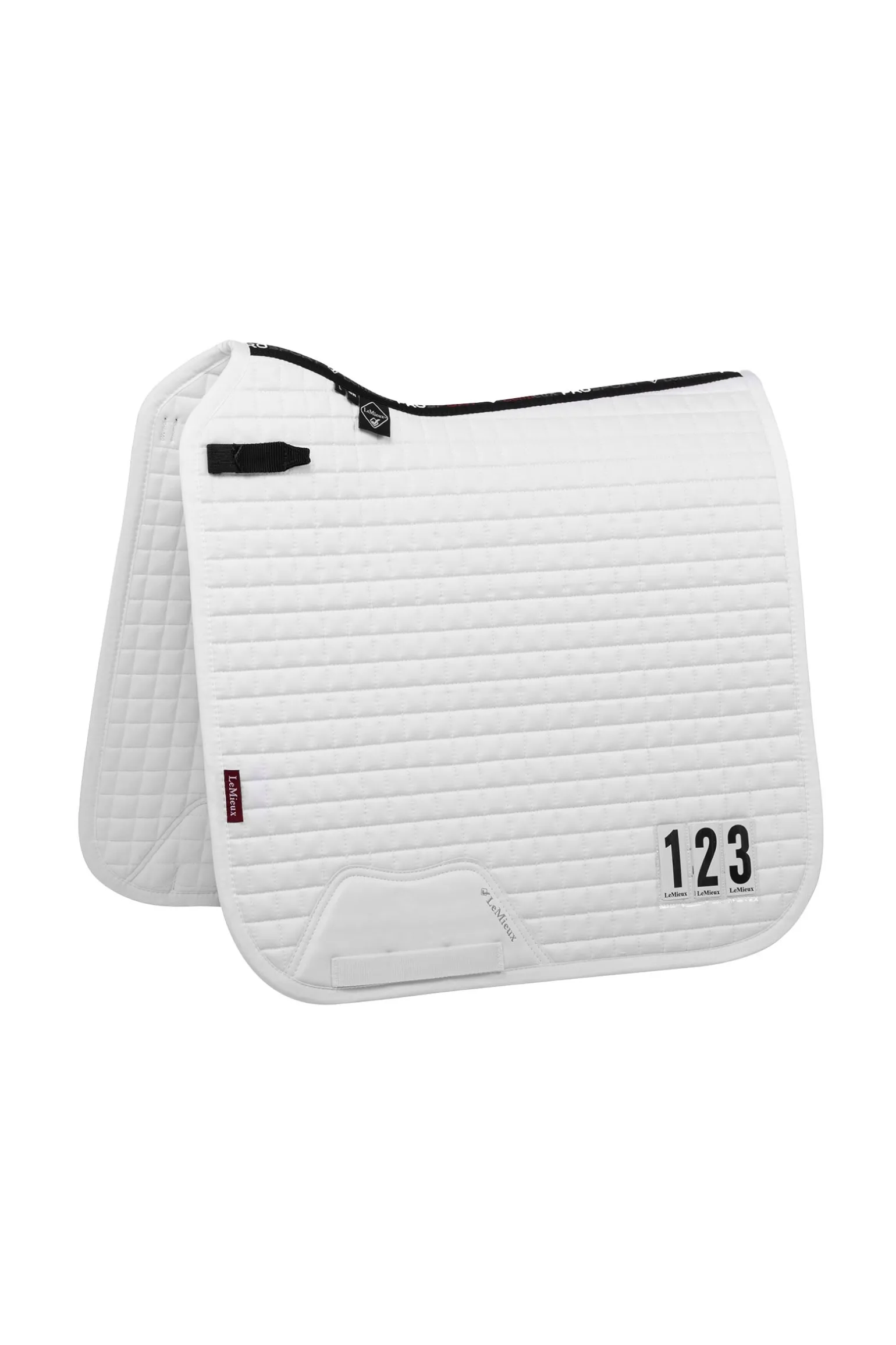 Eine stilvolle und praktische Möglichkeit, deine Startnummer in dezenten, klaren Sichttaschen zu befestigen – ganz ohne separate Nummernschilder. Inklusive drei kompletter Zahlensätze für jede Seite. Die Taschen befinden sich beidseitig auf der Schabracke, um den aktuellen Anforderungen von British Dressage zu entsprechen. Entwickelt für aktive Pferde – mit Fokus auf Stil, Langlebigkeit und maximale Materialleistung. Das überarbeitete Design eignet sich ideal für den Alltag und den Turniereinsatz. In Kombination mit einem Lemieux Half Pad ergibt sich ein besonders eleganter Look.