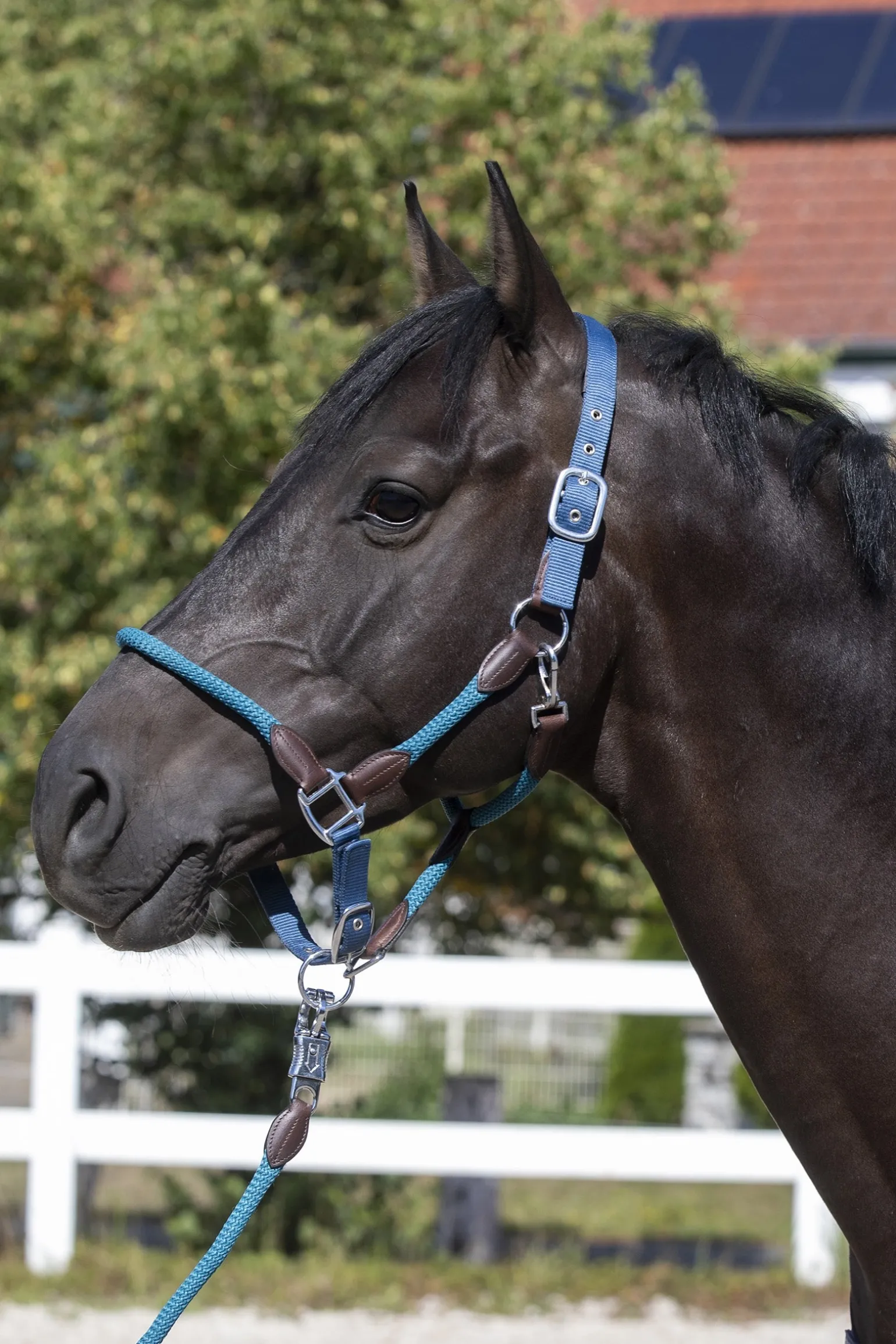 Das außergewöhnliche Seil-Halfter „Dublin“ besteht aus einem weichen Seil, was an den Seiten und im Nasenbreich vernäht wurde. Mit einem weich gepolsterten Genickstück verleiht das Halfter einen guten Tragekomfort für das Pferd. Die Kunstlederabschlüsse sorgen zudem für einen besonders edlen Look. Verstellbar am Kinn- und zweifach am Genickriemen.