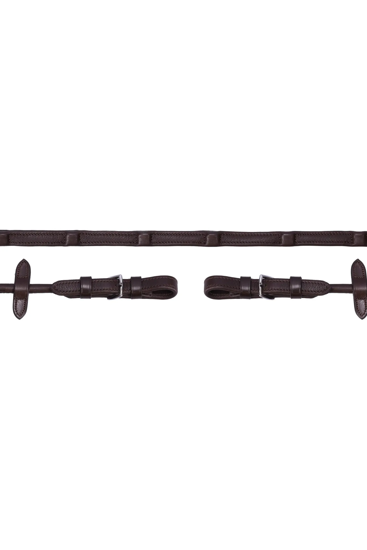 Der rundgenähte Zügel hat einen reißfesten Nylonkern, einschließlich der Gebissschlaufe. Sein Kernmaterial ist vergleichbar mit dem Material eines Sicherheitsgurts.
