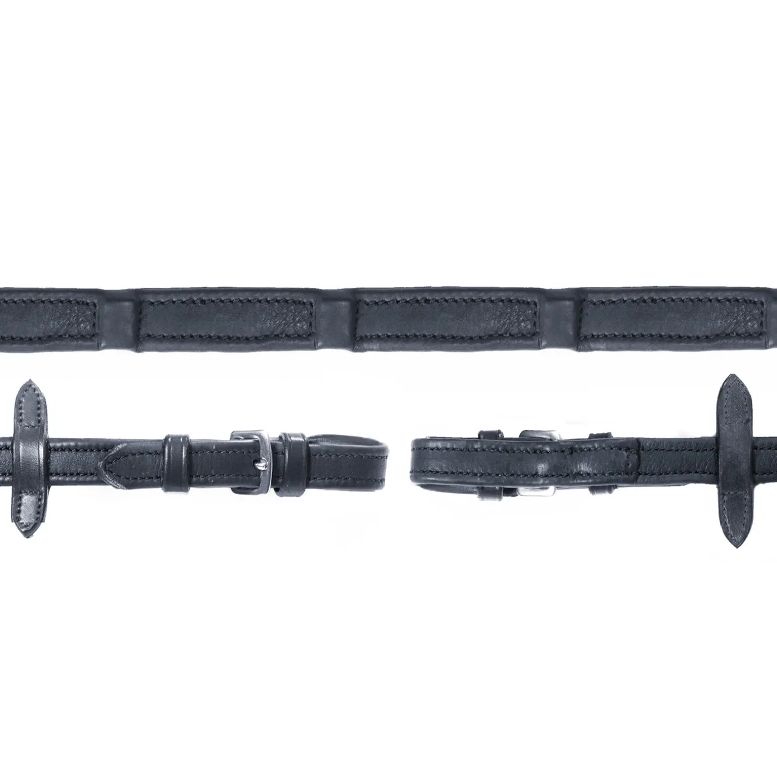 Die innovativen und neuen Durasoft Zügel haben einen reißfesten Nylonkern, zu vergleichen mit einem Sicherheitsgurt. Bis zu Gebissschlaufe hin sind die Züge3l zusätzlich mit stabilem Gurtband unterlegt. Das Leder ist äußerst strapazierfähig, aber dennoch weich und geschmeidig. Eingearbeitete Stopper sorgen für einen sicheren Halt in den Händen. Mit Martingalstoppern. 168mm breit.