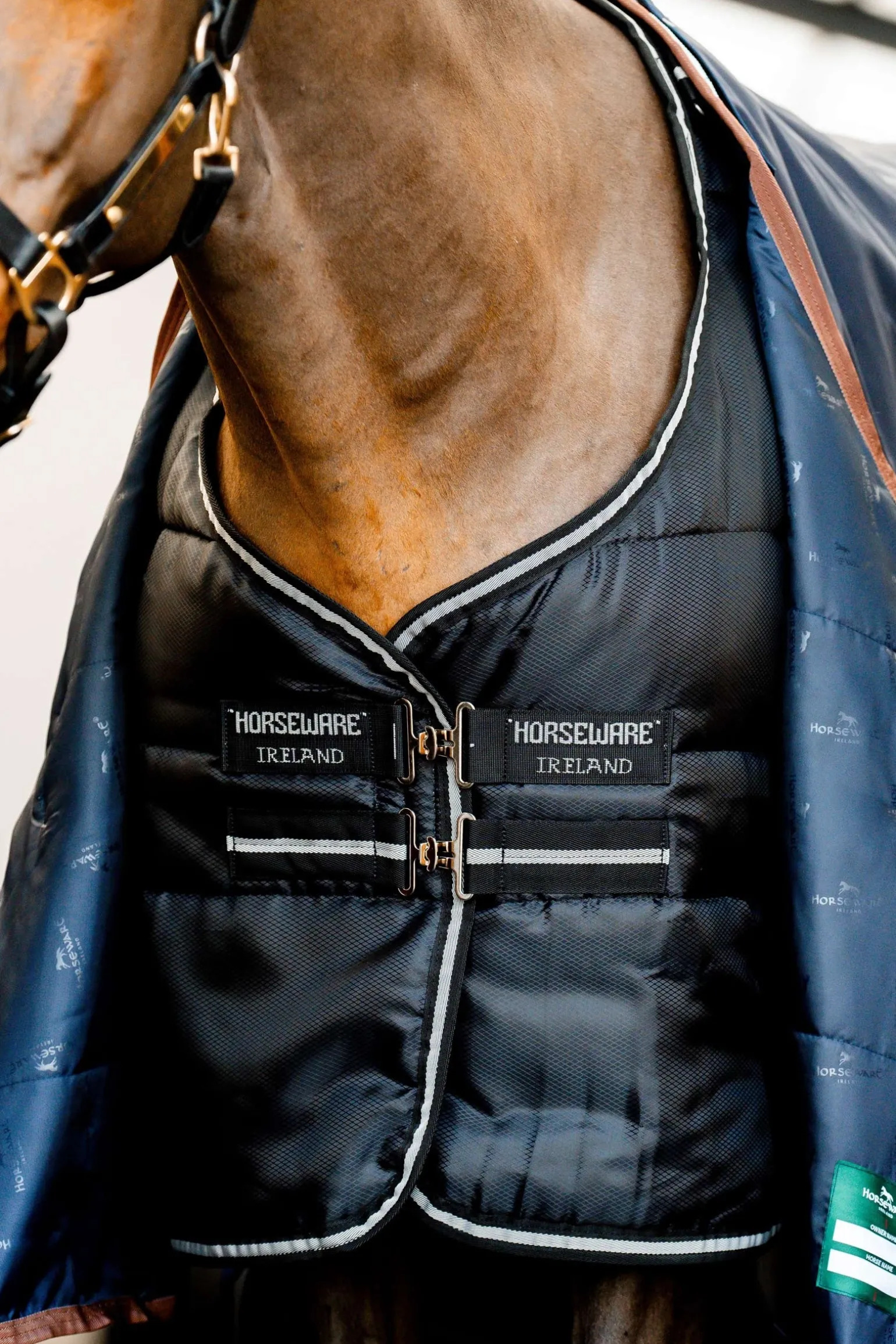 Entdecke die ultimative Vielseitigkeit und Effizienz der Horseware® Easy-Layer Stable (100g Light). Diese innovative Stalldecke bietet alles, was dein Pferd braucht, und kann als eigenständige Stalldecke oder als Mid-Layer verwendet werden. Sie ist mit Ösen und Laschen versehen, so dass du für zusätzliche Wärme schnell einen Liner einschnallen oder für den Weidegang eine Außendecke anbringen kannst – super einfach und extrem zeitsparend. Die Easy-Layer Stable (100g Light) ist aus 210D Ripstop-Polyester mit Diamantenstruktur gefertigt und dadurch sehr widerstandsfähig, haltbar und langlebig. Das speziell behandelte, wasserabweisende Gewebe verhindert, dass Flecken in den Stoff eindringen können, was der Geruchsbildung entgegenwirkt und die Decke länger sauber hält. Diese Decke überzeugt mit einem strapazierfähigen, wasser- und schmutzabweisenden Außenstoff, der mit einer wärmenden Faserfüllung kombiniert wurde. Zur einfachen Kombination mit Horseware®-Linern oder -Weidedecken befinden sich an der Außenseite der Decke Klettverschlüsse und an der Innenseite Ösen. Halsteil-Ösen ermöglichen die Anbringung eines Halsteils, während zwei abnehmbare Kreuzgurte und der gerade Brustverschluss für einen sicheren und bequemen Sitz sorgen. Die Beinausschnitte vorne bieten ein Extra an Bewegungsfreiheit und der Schweifriemen hält die Decke sicher an ihrem Platz. Die Decke ist mit einem glanzgebenden Polyesterfutter ausgestattet, wodurch die Horseware® Easy-Layer Stable (100g Light) nicht nur funktional und stilvoll ist, sondern auch hohen Tragekomfort bietet. Wenn du eine vielseitige, langlebige und praktische Decke suchst, die all deine Anforderungen an eine Stall- und Weidedecke erfüllt, ist die Horseware® Easy-Layer Stable (100g Light) die perfekte Wahl.