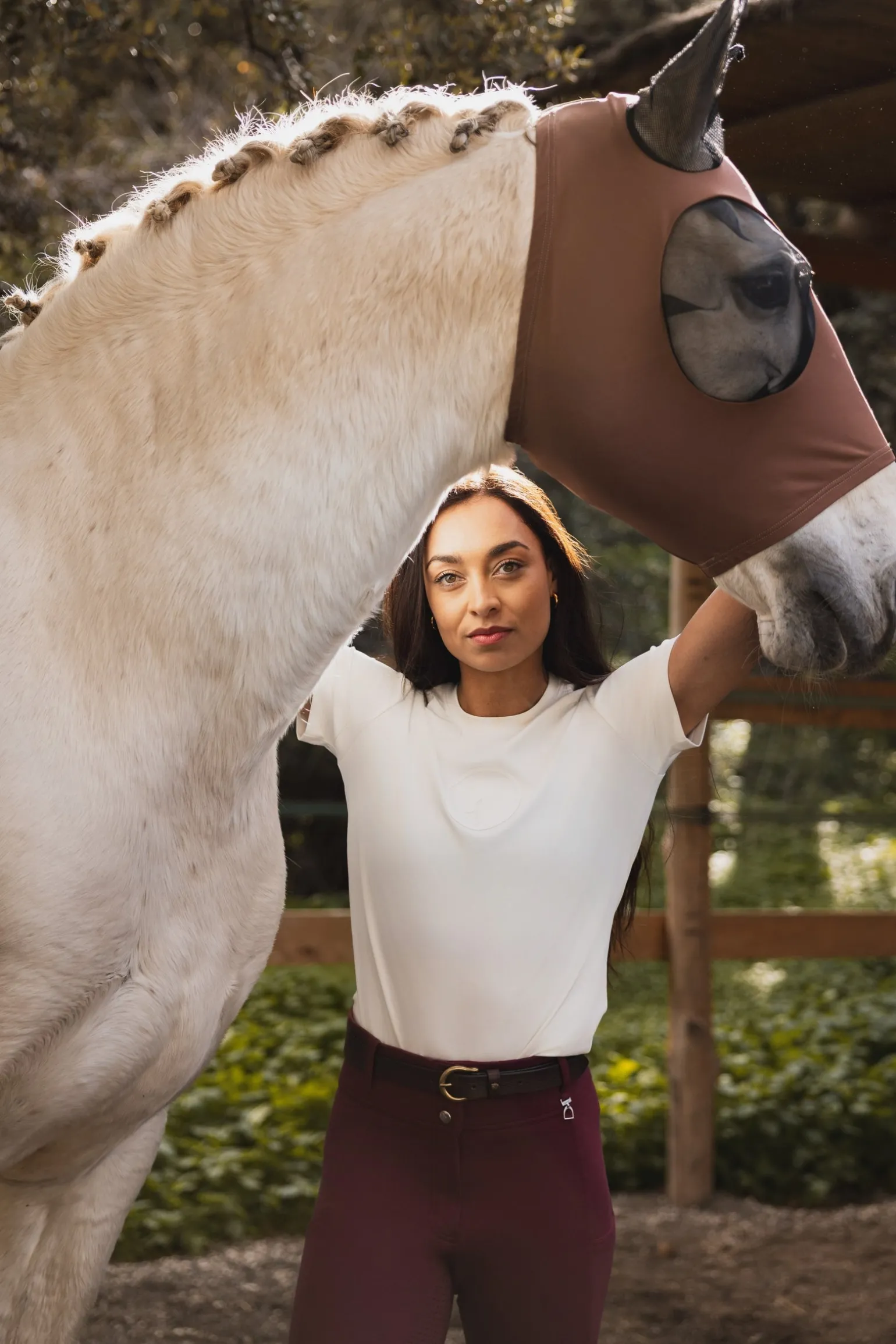 Diese elastische Fliegenmaske von Horze ist aus dehnbarem Material, das sich leicht über den Kopf des Pferdes ziehen lässt. Sie bleibt an Ort und Stelle und bietet einen sicheren Sitz. Strapazierfähiges Mesh an den Augen lässt zusätzlichen Raum für Komfort. Das Muster sorgt für einen verspielten Look.