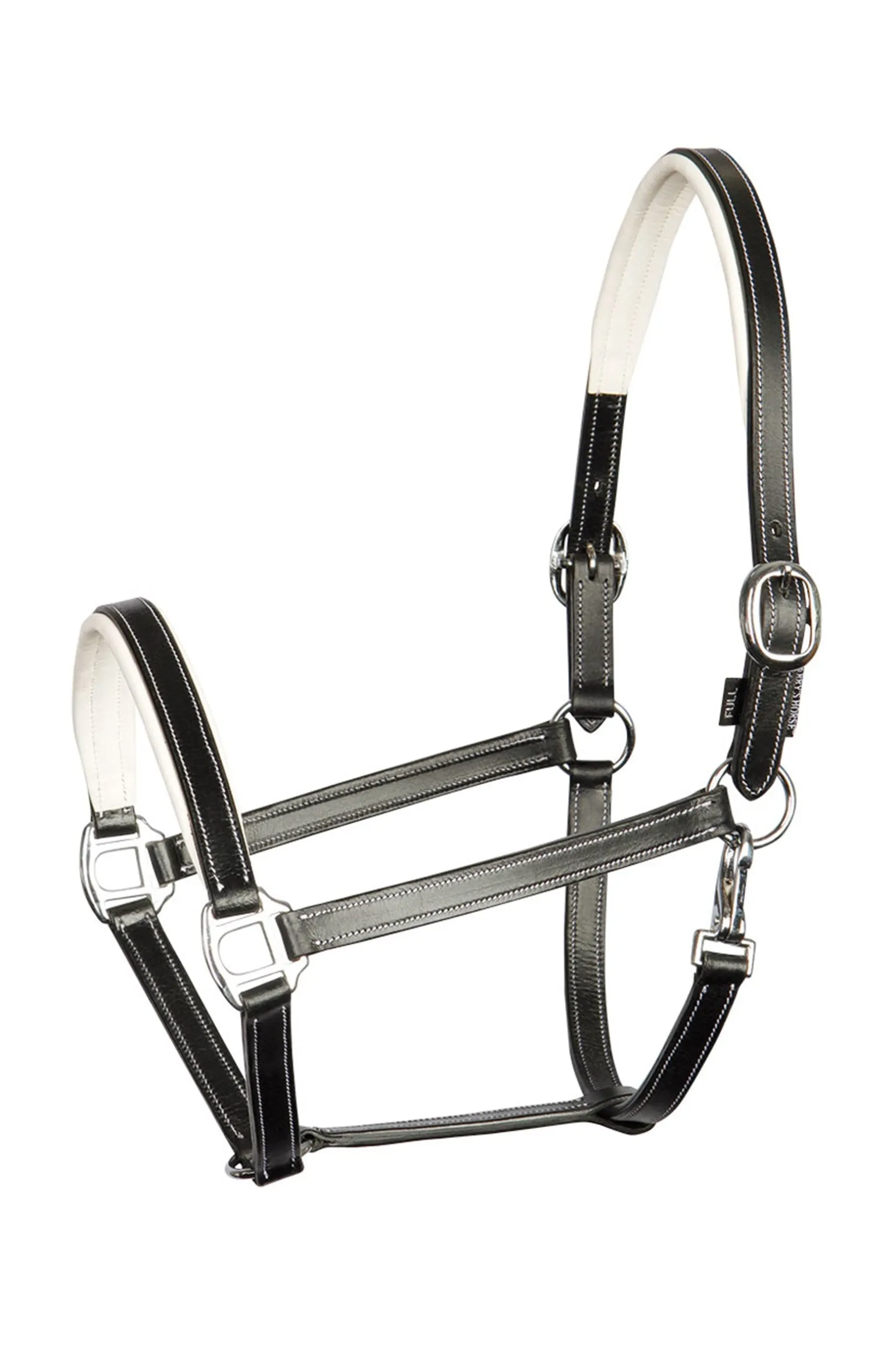 Lederhalfter. Verstellbar an Genickstück (doppelt) und Kinn.