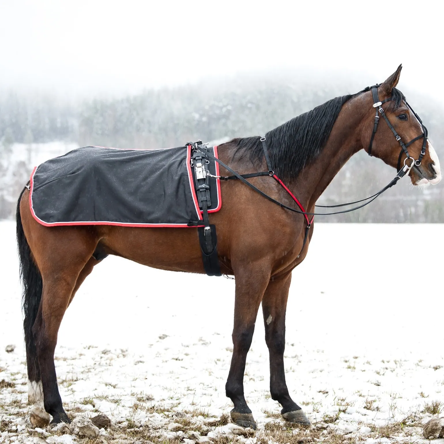 Schwedisches Quater Sheet aus Enstex. Das Sheet hat eine warme Fleece-Fütterung. Es wird empfohlen, direkt hinter dem Selett anzulegen. Das Quater Sheet wird einfach am Pferd befestigt und bleibt an Ort und Stelle. Wird mit Clips und Nylonriemen am Geschirr befestigt. (M = Warmblüter oder Pferde, die ca. 135cm Decken benötigen. L = große Warmblüter und Kaltblüter benötigen ca. 145cm Decken.)