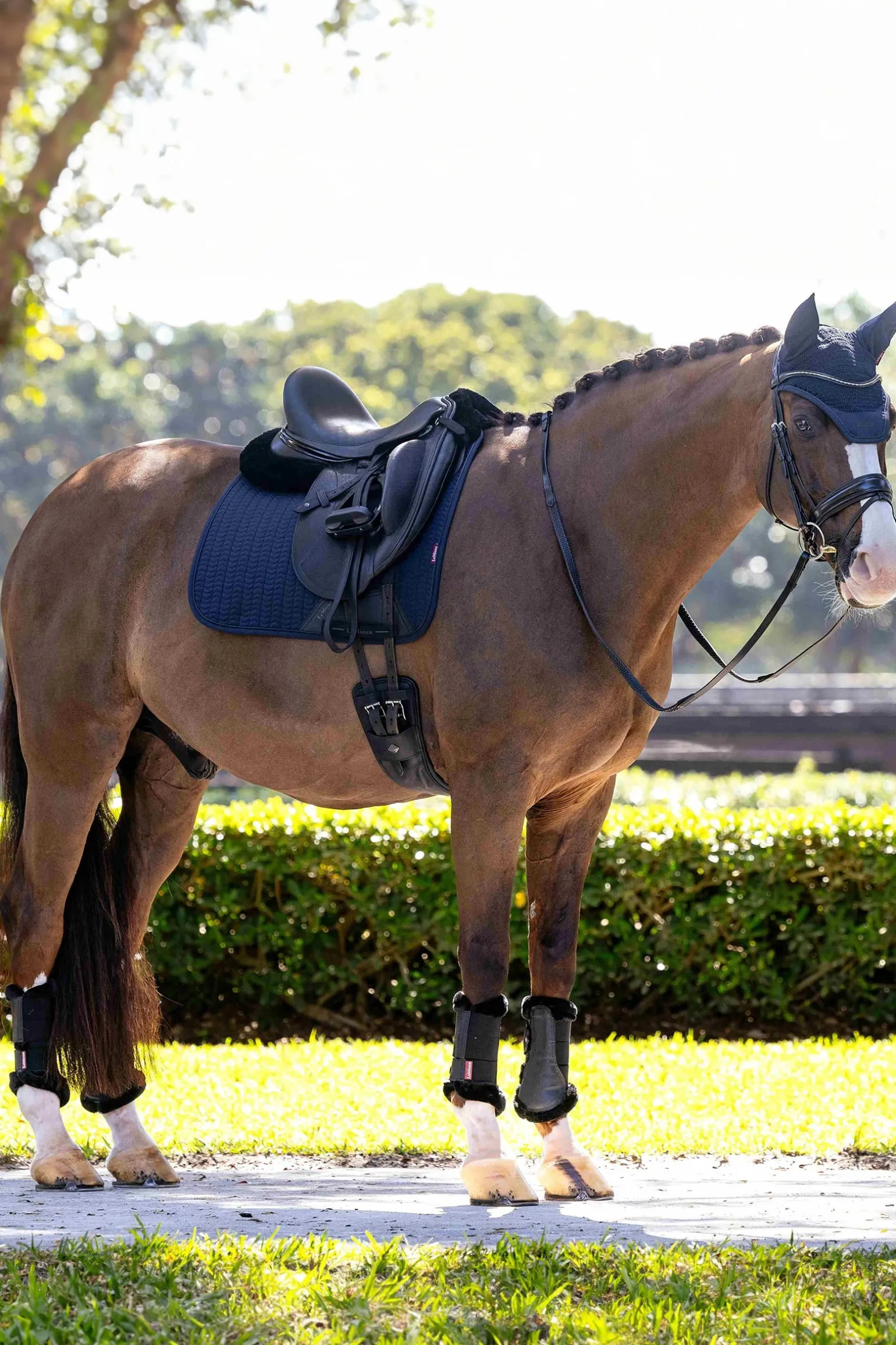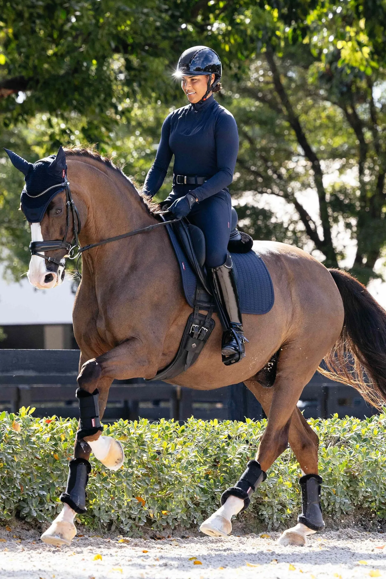 Entwickelt für anspruchsvolle Reiter mit technischer Performance, die jeder genießen kann. Das weiche Softshell-Material der Essence-Kollektion strahlt Eleganz aus. Die konturierte, gesteppte Softshell-Oberseite wurde präzise geformt, um sich perfekt an die Körperlinien deines Pferdes anzupassen, ohne zu Falten. Das weiche, atmungsaktive Innenfutter enthält kühlende Fasern. Je wärmer dein Pferd wird, desto intensiver arbeitet das feuchtigkeitsaktivierte Kühlsystem unter dem Sattel. In Kombination mit einem durchgehenden 3D-Carbon-Mesh-Rücken für maximale Luftzirkulation ist dies eine Schabracke, die speziell für leistungsstarke Pferde entwickelt wurde. Die hohe Widerristform reduziert den Druck und verbessert die Passform des Sattels. Der sportliche, matt strukturierte Kunstleder-Bereich zum Schutz des Gurtes wird durch ein geprägtes Logo ergänzt.