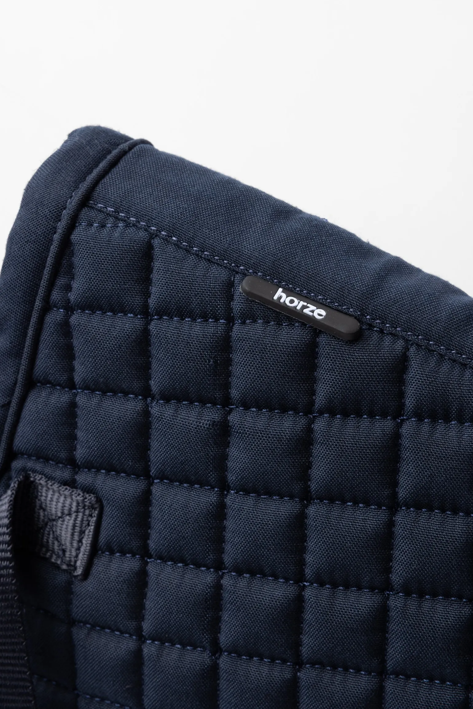 Diese Vielseitigkeitsschabracke kombiniert zeitlose Eleganz mit funktionalen Details. Das traditionelle quadratische Steppmuster sorgt nicht nur für ein stilvolles Erscheinungsbild, sondern auch für eine gleichmäßige Druckverteilung. Die robusten Nylon-Gurtstrippen mit Klettverschluss gewährleisten einen sicheren Sitz, während die Einfassung aus eigenem Stoff das Design harmonisch abrundet. Ein kleines Gummiabzeichen im Bereich des Widerrists setzt einen dezenten, aber stilvollen Akzent und verleiht der Schabracke eine edle Note.
