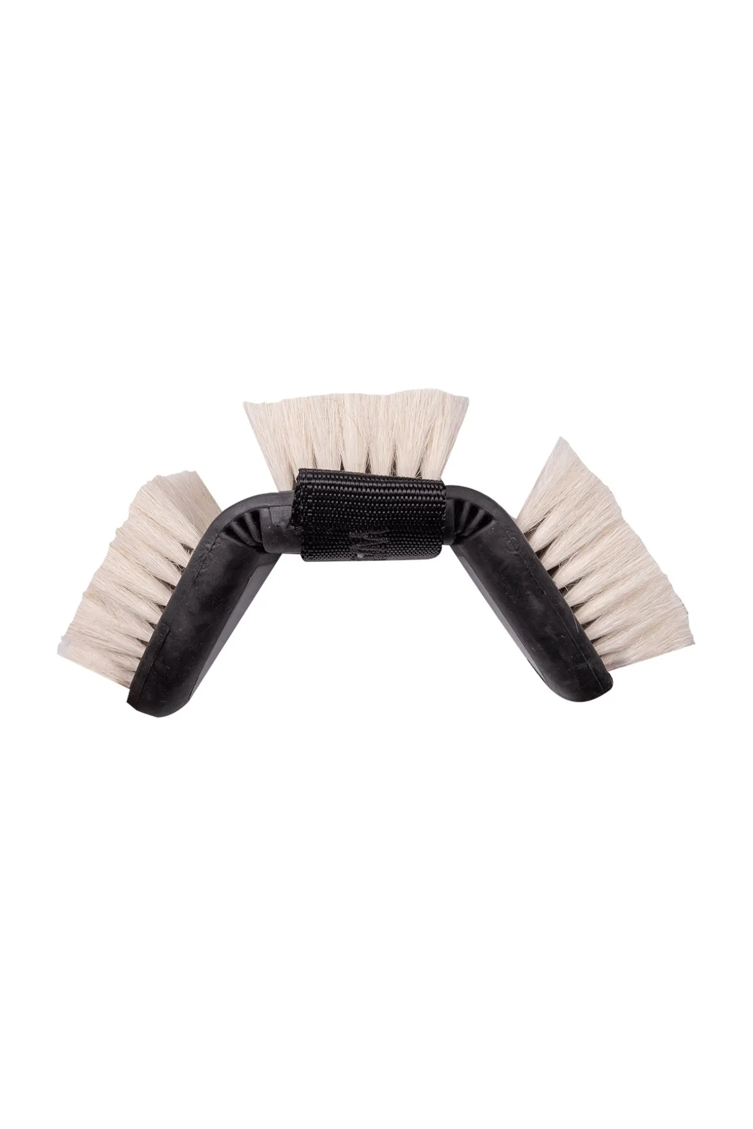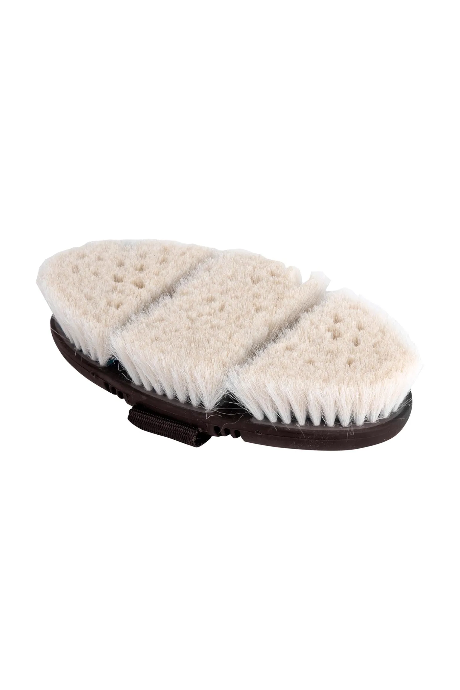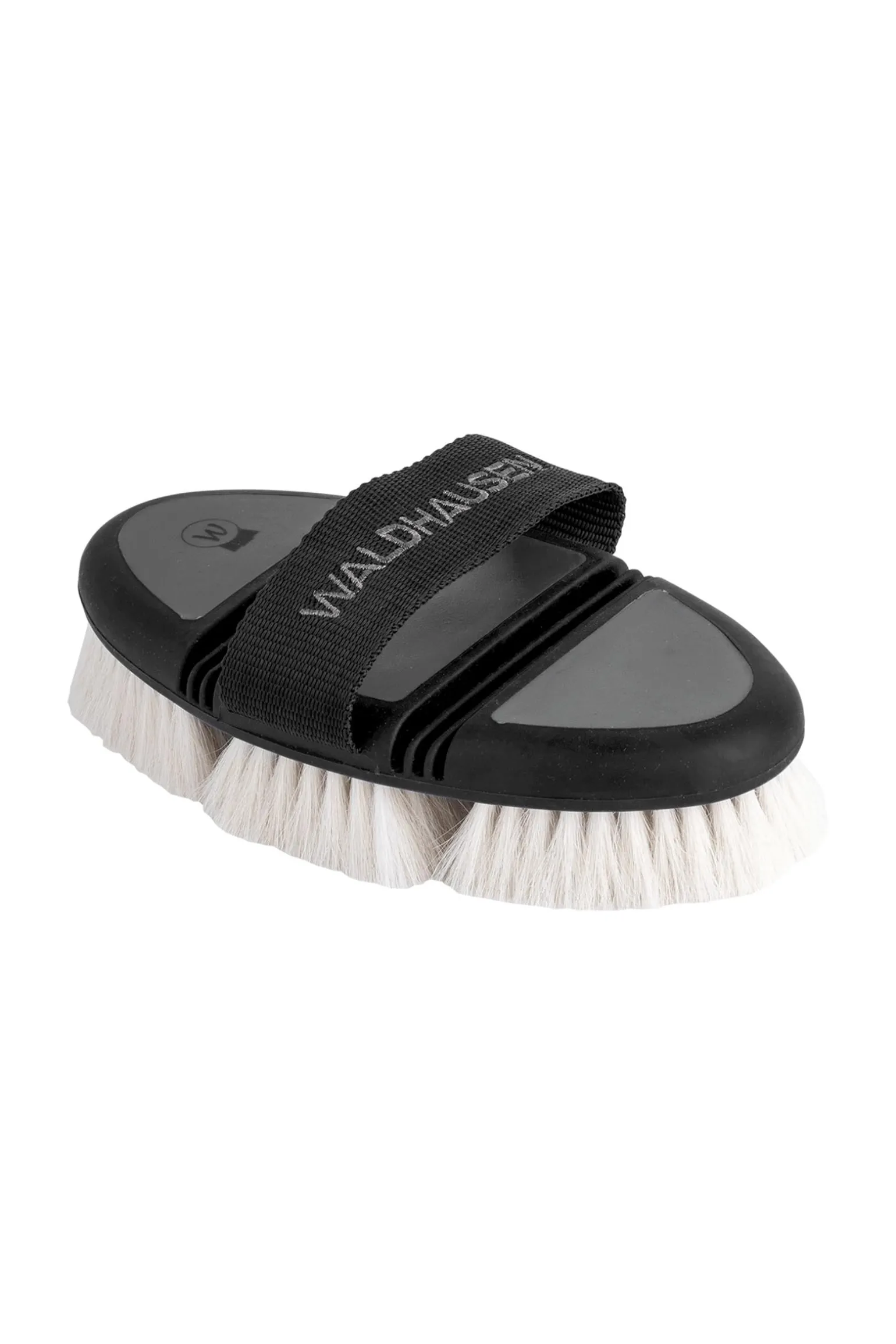 Mit ihren extrem weichen Borsten aus Ziegenhaar sorgt diese Glanzbürste für besondere Pflegemomente und entfernt feinen Staub, sodass das Fell wunderschön glänzt. Die Waldhausen Flex Line schont dank ihrer doppelt biegsamen Rückseite das Handgelenk und passt sich optimal dem Pferdekörper an.