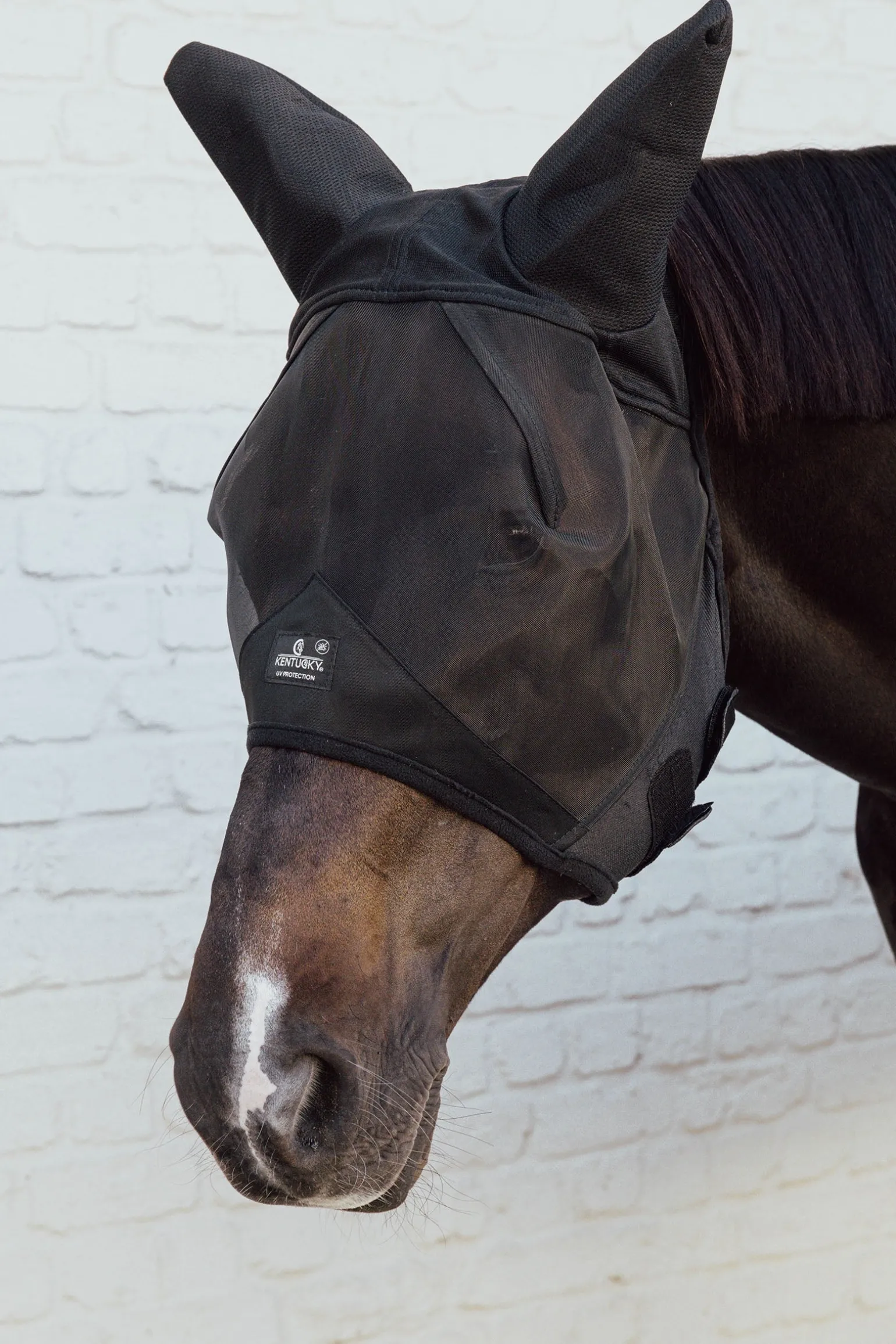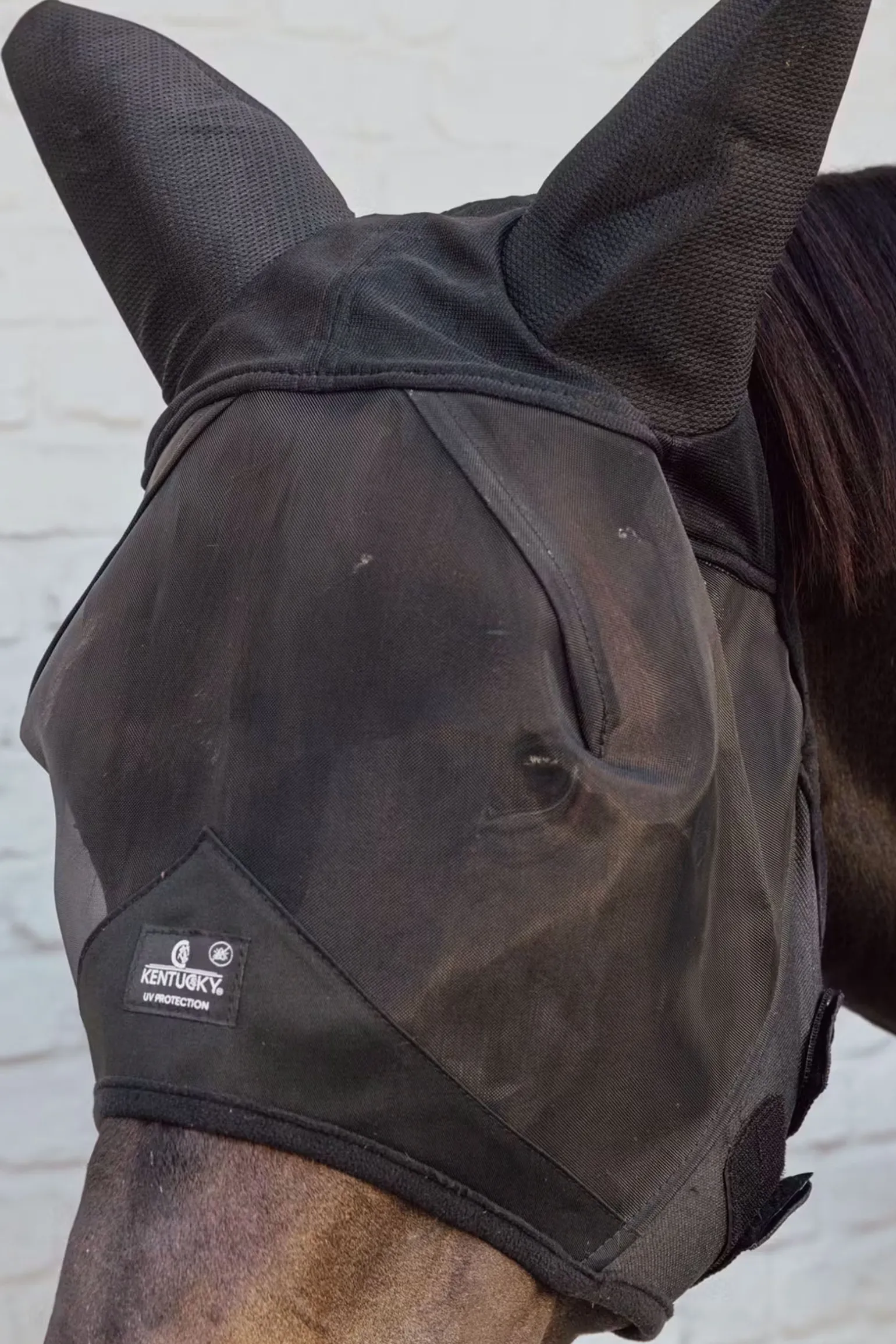 Die Fliegenmaske mit Ohren Soundless schützt die Augen und Ohren deines Pferdes vor Fliegen und anderen Insekten. Ihre schalldichten Ohren verringern Geräusche und ermöglichen es sensiblen Pferden, sich besser zu entspannen. Sie bietet maximalen Schutz vor Insekten, ohne das Pferd zu stören. Die Maske kann auf der Weide getragen werden und ist sehr widerstandsfähig gegenüber verspielten Pferden. Die Fliegenmaske wird mit einem doppelten Klettverschluss unter dem Kiefer deines Pferdes geschlossen. Die Fliegenmasken sind die perfekte Lösung für Zuchtstuten und Pferde, die rund um die Uhr draußen sind. Sie bleiben den ganzen Tag an Ort und Stelle und bieten deinem Pferd höchsten Komfort. Die Fliegenmaske besteht aus einem starken, aber extrem atmungsaktiven Mesh-Gewebe. Die Ohren der Maske bestehen aus einem starken und dicken schalldichten Material. Die Ränder der Maske sind sehr weich, um Scheuern zu vermeiden. Die Fliegenmaske hat eine anatomische Form und einen Klettverschluss für eine perfekte Passform. Sie ist in den Größen Full und Cob erhältlich.
