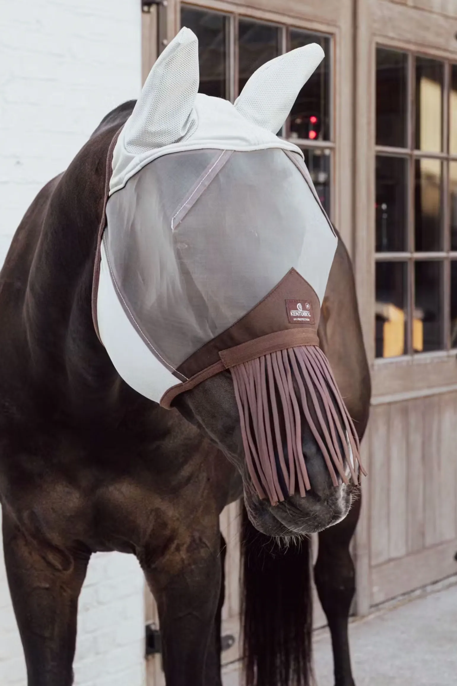 Die Fliegemaske Classic mit Ohren schützt die Augen und Ohren deines Pferdes vor Fliegen und anderen Insekten. Die Fransen schützen die Nase deines Pferdes, ohne sie vollständig zu bedecken. Sie bietet maximalen Schutz vor Insekten, ohne das Pferd zu stören. Diese Fliegemaske ist ideal für Pferde, die sehr empfindlich auf Insekten reagieren. Sie kann auf der Weide getragen werden und ist besonders widerstandsfähig gegen verspielte Pferde. Die Fliegemaske wird mit einem doppelten Klettverschluss unter dem Kiefer des Pferdes geschlossen. Die Classic Fliegemasken sind die perfekte Lösung für Zuchtstuten und Pferde, die rund um die Uhr draußen sind. Sie bleiben den ganzen Tag an Ort und Stelle und bieten deinem Pferd 100% Komfort. Die Fliegemaske besteht aus einem starken, aber extrem atmungsaktiven Mesh-Gewebe. Die Ohren der Maske sind aus einem robusten und sehr effektiven Fliegenstrick-Mesh gefertigt. Die Ränder der Maske sind sehr weich, um Scheuern zu vermeiden. Die Fliegemaske hat eine anatomische Form und einen Klettverschluss für eine perfekte Passform.