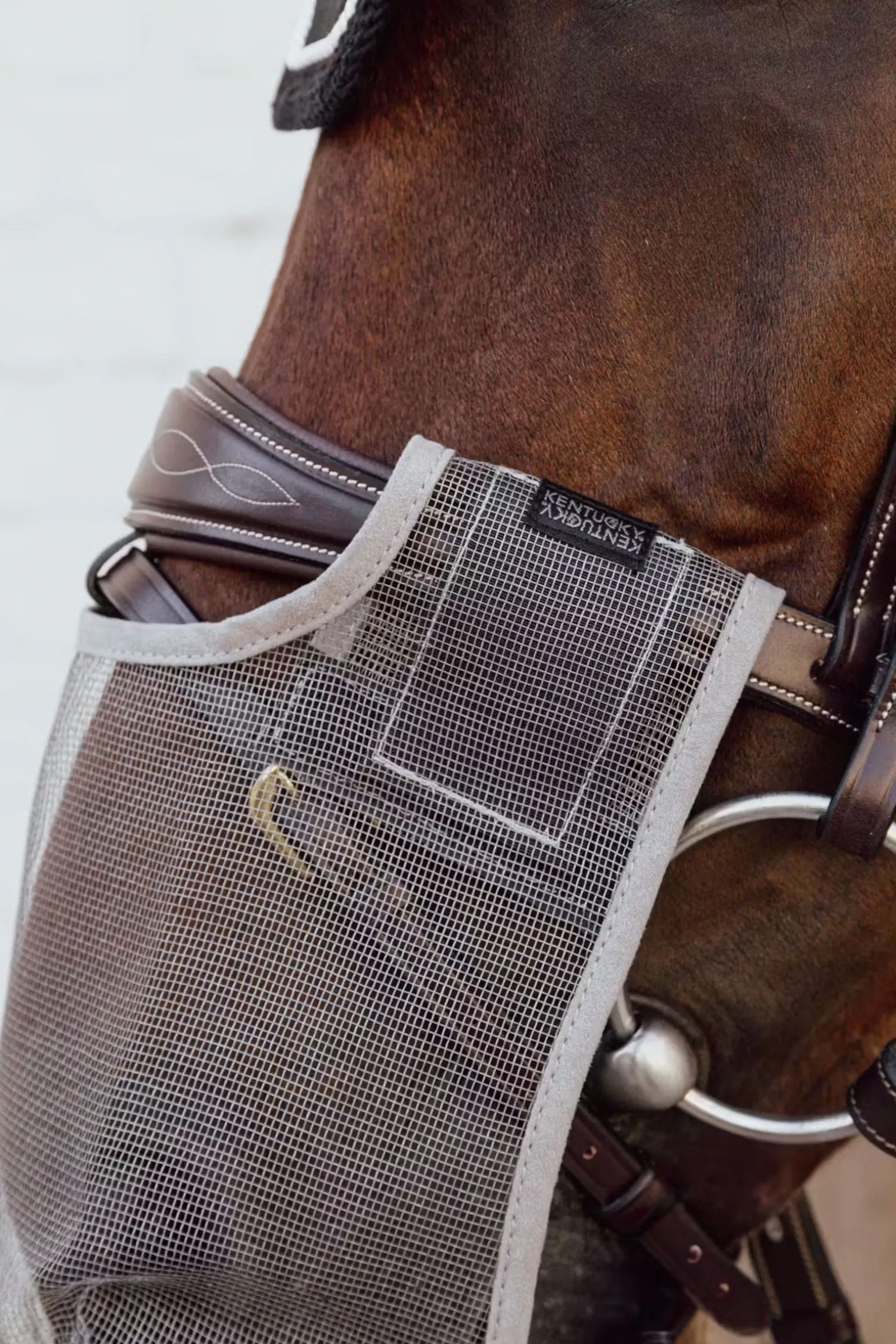 Der Anti-Fly-Nüsternschutz ist ideal für Pferde, die extrem empfindlich auf Insekten reagieren. Es kann sowohl im Training als auch auf dem Turnier eingesetzt werden. Das Netz stört weder das Gebiss noch die Atmung des Pferdes. Der Anti-Fly-Nüsternschutz kann sowohl beim Ausritt als auch im Stall in Kombination mit einem Halfter verwendet werden. Der Nüsternschutz ist aus einem widerstandsfähigen Netz gefertigt, das keine Insekten durchlässt, aber dennoch hoch atmungsaktiv ist. Es wird mit 2 Klettverschlüssen am Nasenriemen der Trense befestigt. Aufgrund der anatomischen Form des Anti-Fly-Nüsternschutzes lässt es sich leicht mit verschiedenen Arten von Nasenriemen und Halftern kombinieren.