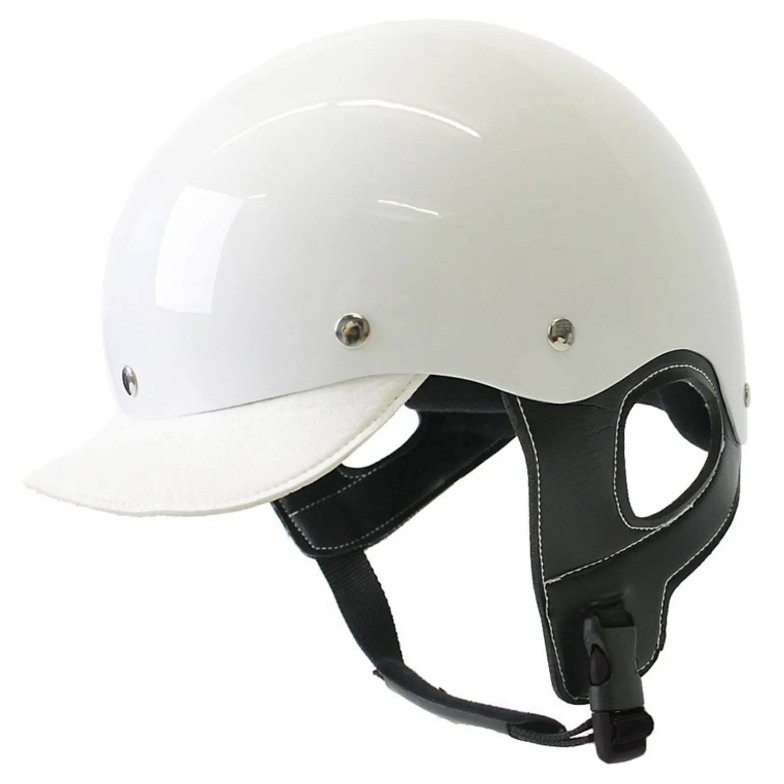 Modischer Trabsport-Helm mit Schirm und Kunstleder an den Ohren. Wir mit Easy-Click unter dem Kinn befestigt. Sicherheitsgeprüft – C.E. Eingetragener Helm. Entspricht dem Standard CE VG1.XXL – 64, XL – 62, L – 60, M – 58, S – 56.