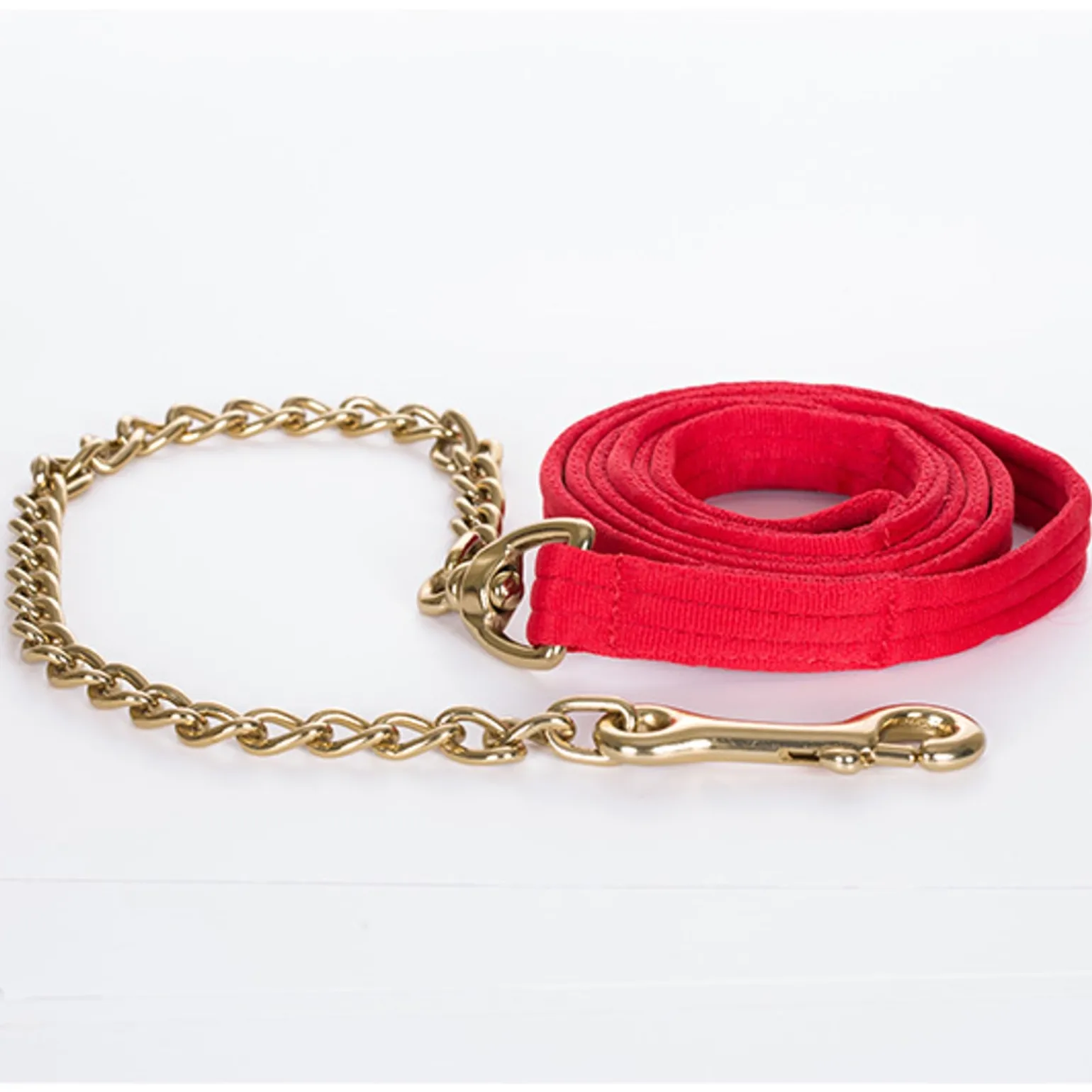 Weiche, angenehme Führleine, gewebt. Mit einer vermessingten Kette und einer Handschlaufe.