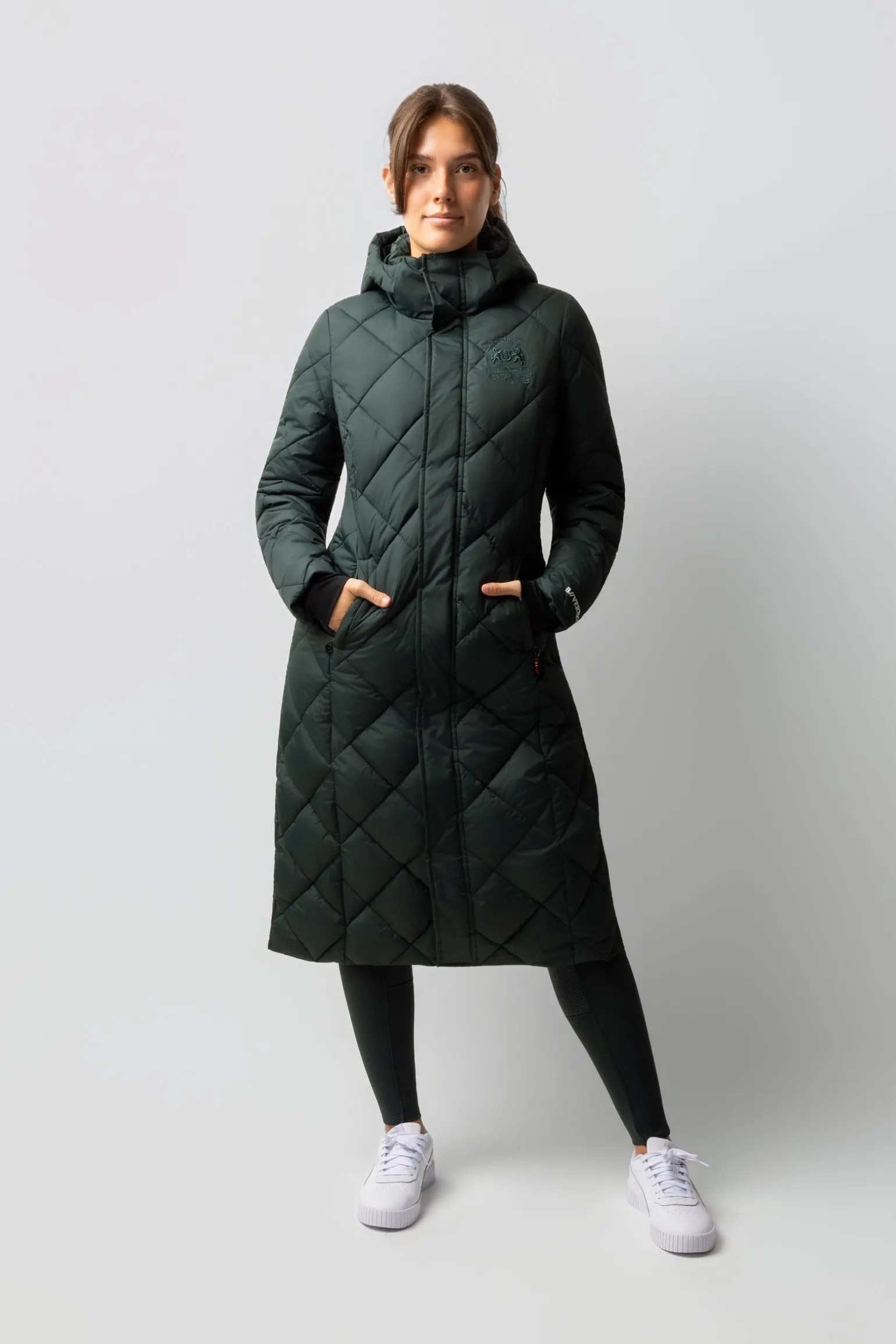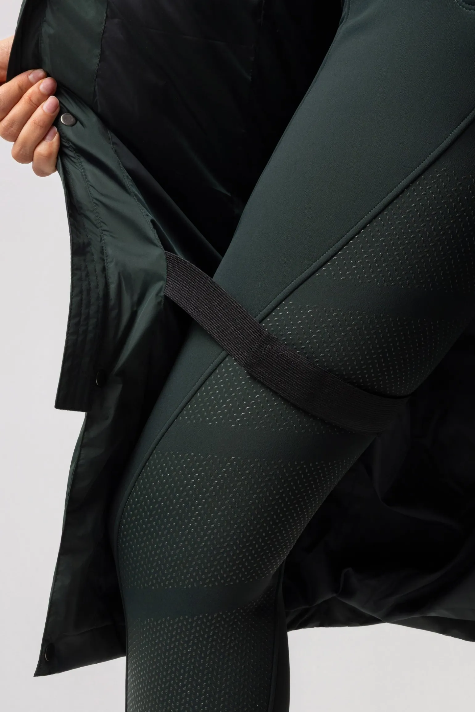 Dieser Mantel hat eine Wasserdichte von 3000 mm, damit du auch an Regentagen trocken bleibst. Mit einer Atmungsaktivität von 3000mvp lässt sie Feuchtigkeit entweichen und hält dich von innen trocken und komfortabel. Die warme Wattierung sorgt für eine hervorragende Isolierung und hält dich bei kühlen Temperaturen warm. Der längere Schnitt bietet erweiterte Abdeckung und Schutz. Die storm cuffs verhindern, dass Wind und Regen durch die Ärmel eindringen. Die abnehmbare Kapuze sorgt für Vielseitigkeit und ermöglicht es dir, dich an wechselnde Wetterbedingungen anzupassen. Der Öffnungsschlitz am Rücken erhöht die Bewegungsfreiheit, während die elastischen Riemen es dir ermöglichen, den Mantel während des Reitens an deinen Beinen zu befestigen.