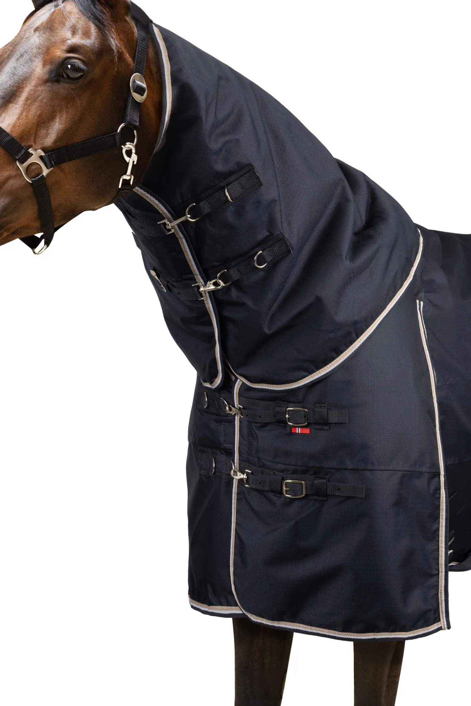 Eine klassische leichte Regendecke mit abnehmbarem Halsteil ist die perfekte vielseitig einstetzbare Pferdedecke.