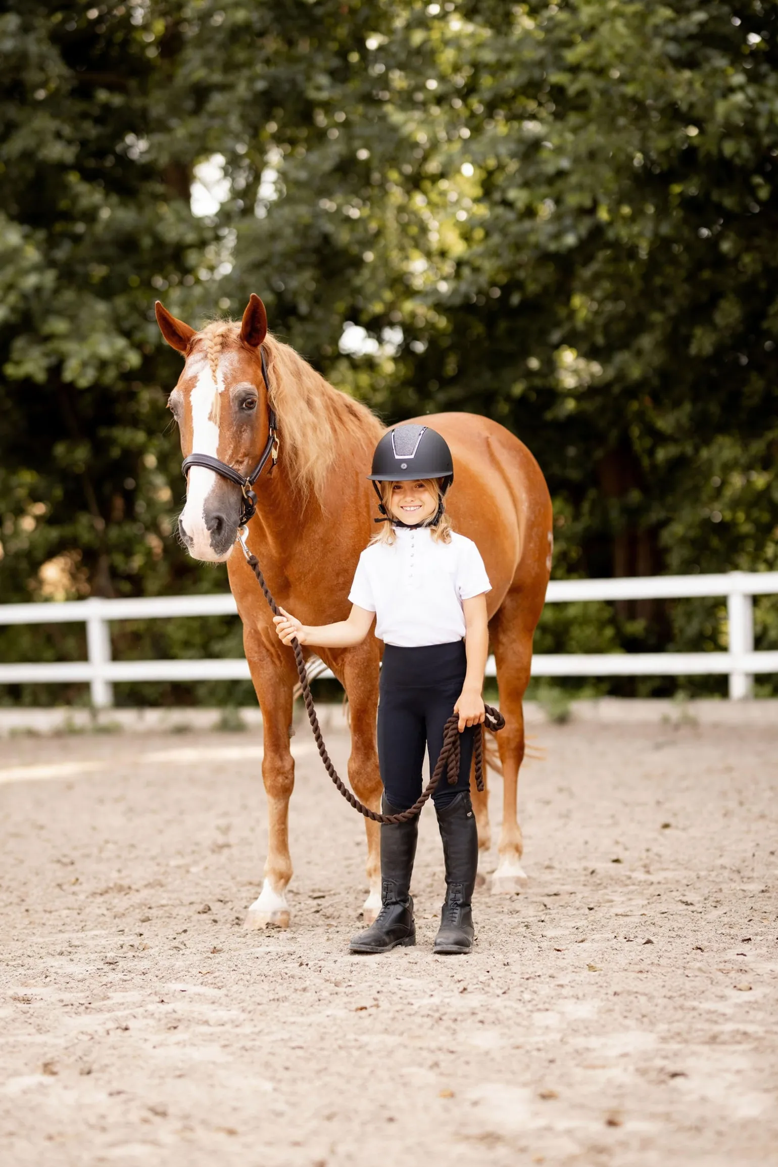 Die Horze Gilian Reitleggings besteht aus festigendem Material mit Kompressionsfunktion. Sie gibt Kinderbeinen beim Reiten die ultimative Unterstützung. Ein hoher Bund hält sie an ihrem Platz und ist praktisch, um ein T-Shirt hineinzustecken. Der Silikonvollbesatz sorgt für den idealen Kontakt zum Sattel. Zwei Taschen an den Oberschenkeln bieten genug Platz für ein Handy. Wähle aus gedeckten oder strahlenden Farben, welcher Stil am besten passt!