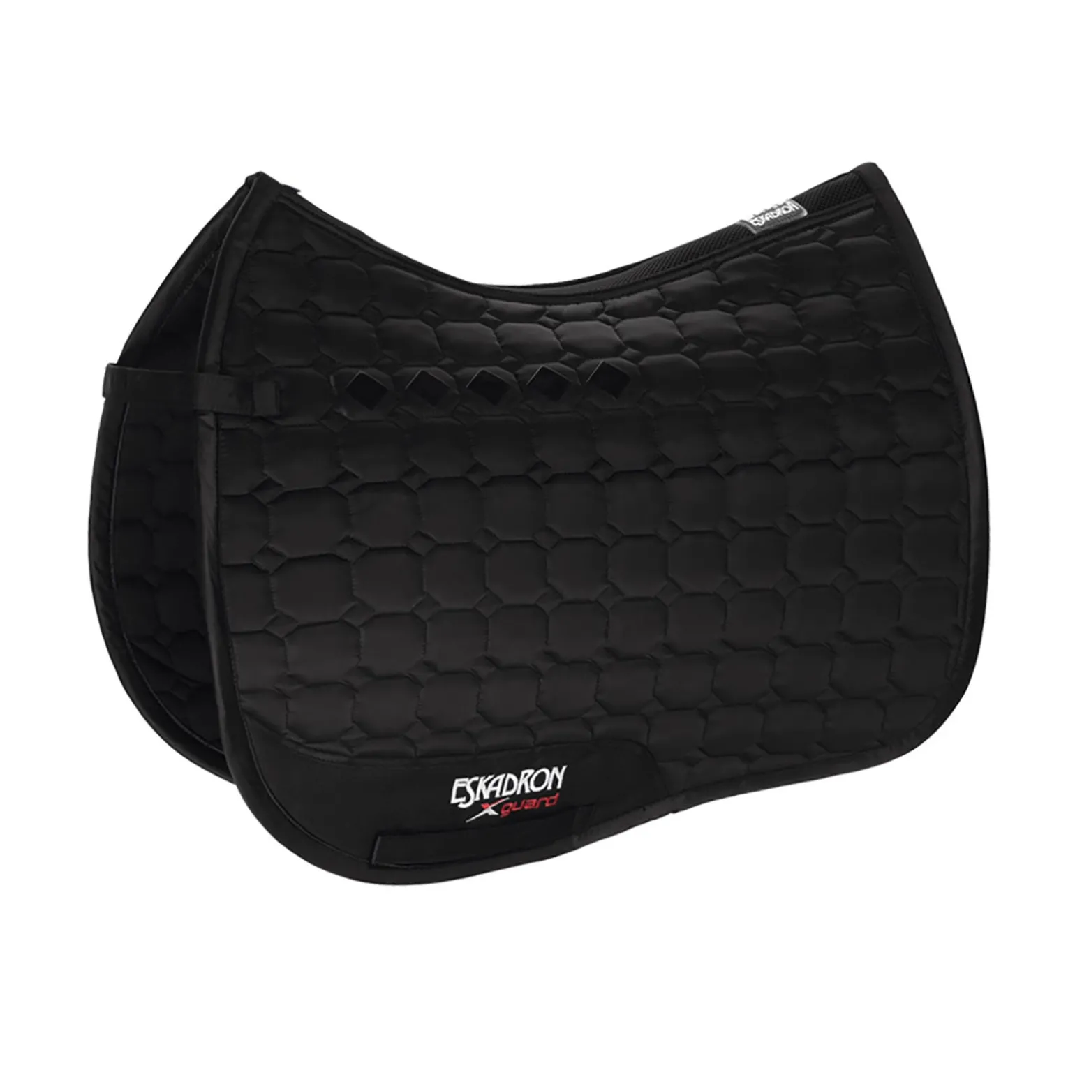 Brandneue, strapazierfähige Schabracke im Sonderschnitt. Das Glossy-Obermaterial ist kompakt versteppt mit Silikonfläschen im Sattelbereich gegen enventuelles Rutschen des Sattels. Die beidseitigen „RUB-PROTECTION“-Flächen im Bereich der Sattelgurte schützen gegen Scheuern. Gerade in den warmen Monaten sind nach wie vor Satteldecken durch ihre geringe Auflagefläche populär. Zusätzlich ist im Rückenkanal zur optimalen Luftzirkualtion ein Air-Condition-Abstandsgewirk eingearbeitet. Bei dieser Sonderspringform bleibt genug Platz für etwaige Bestickungen oder Startnummern.