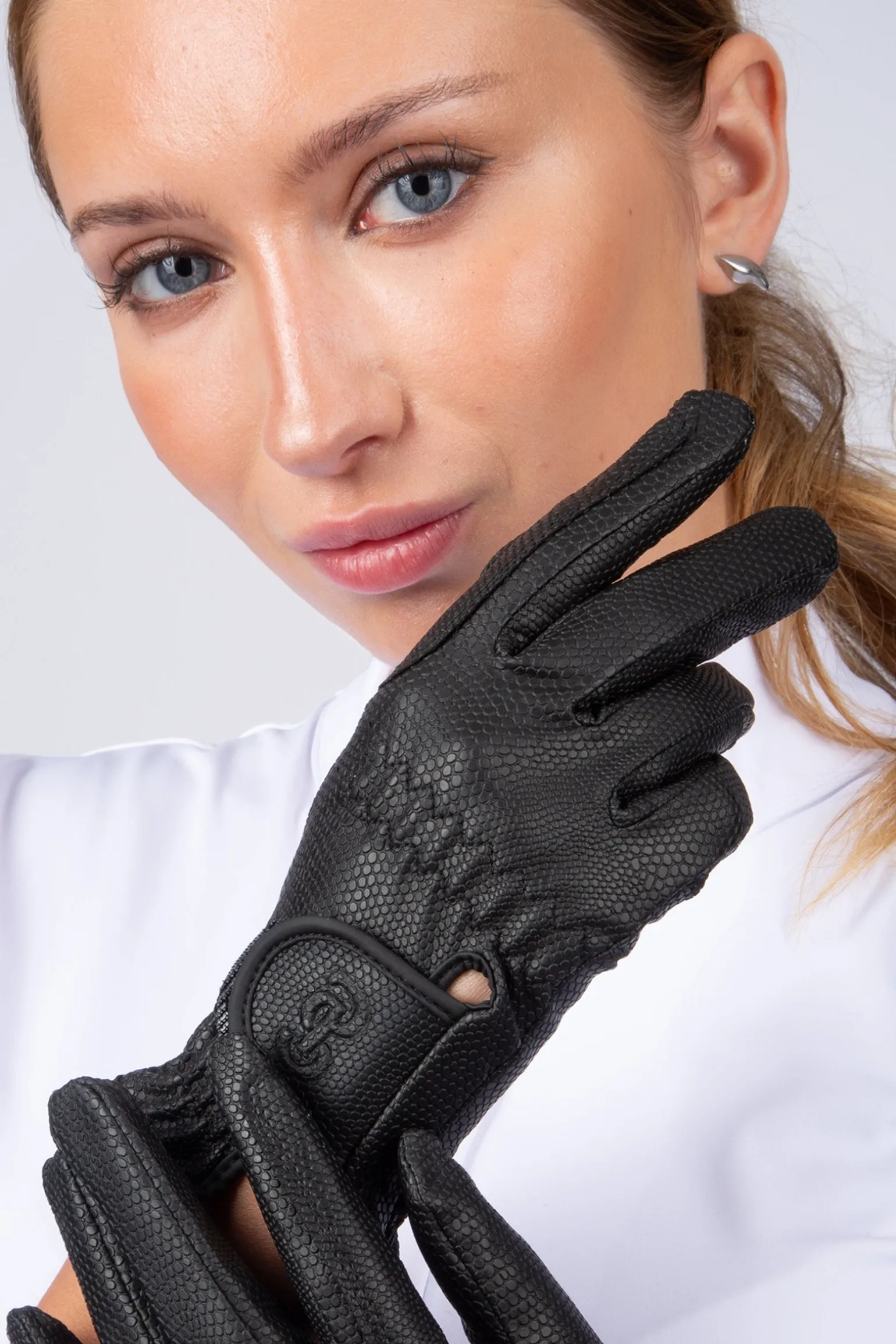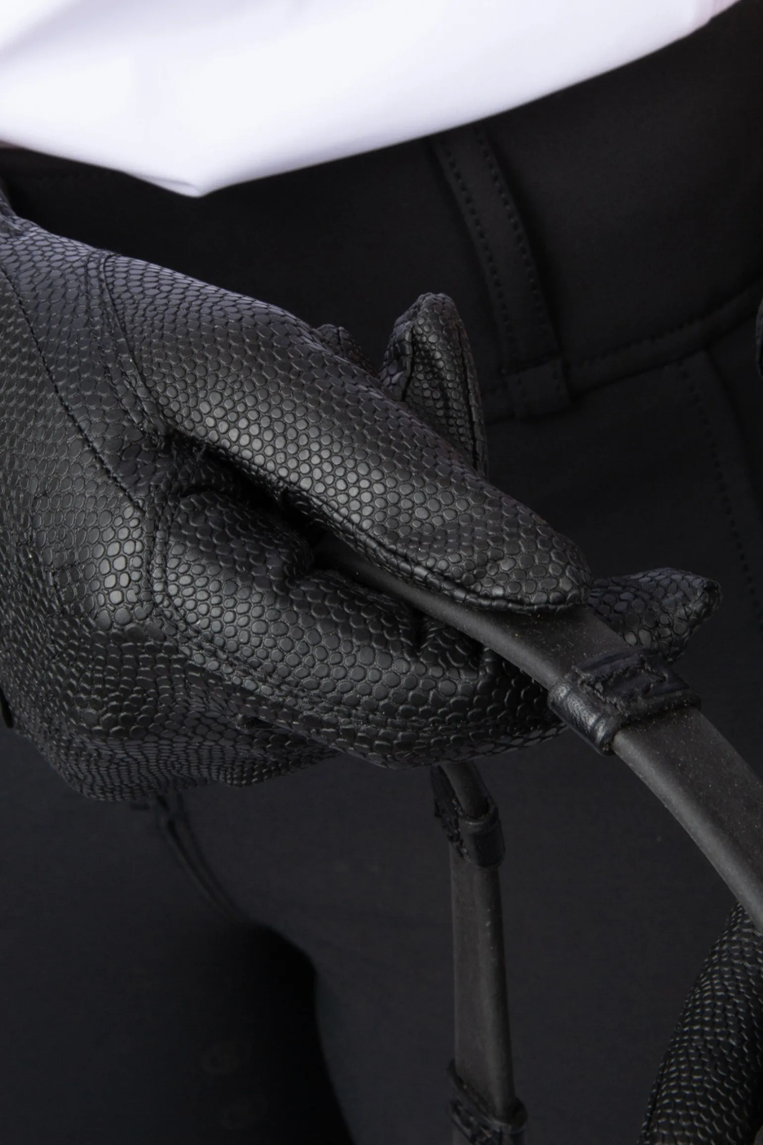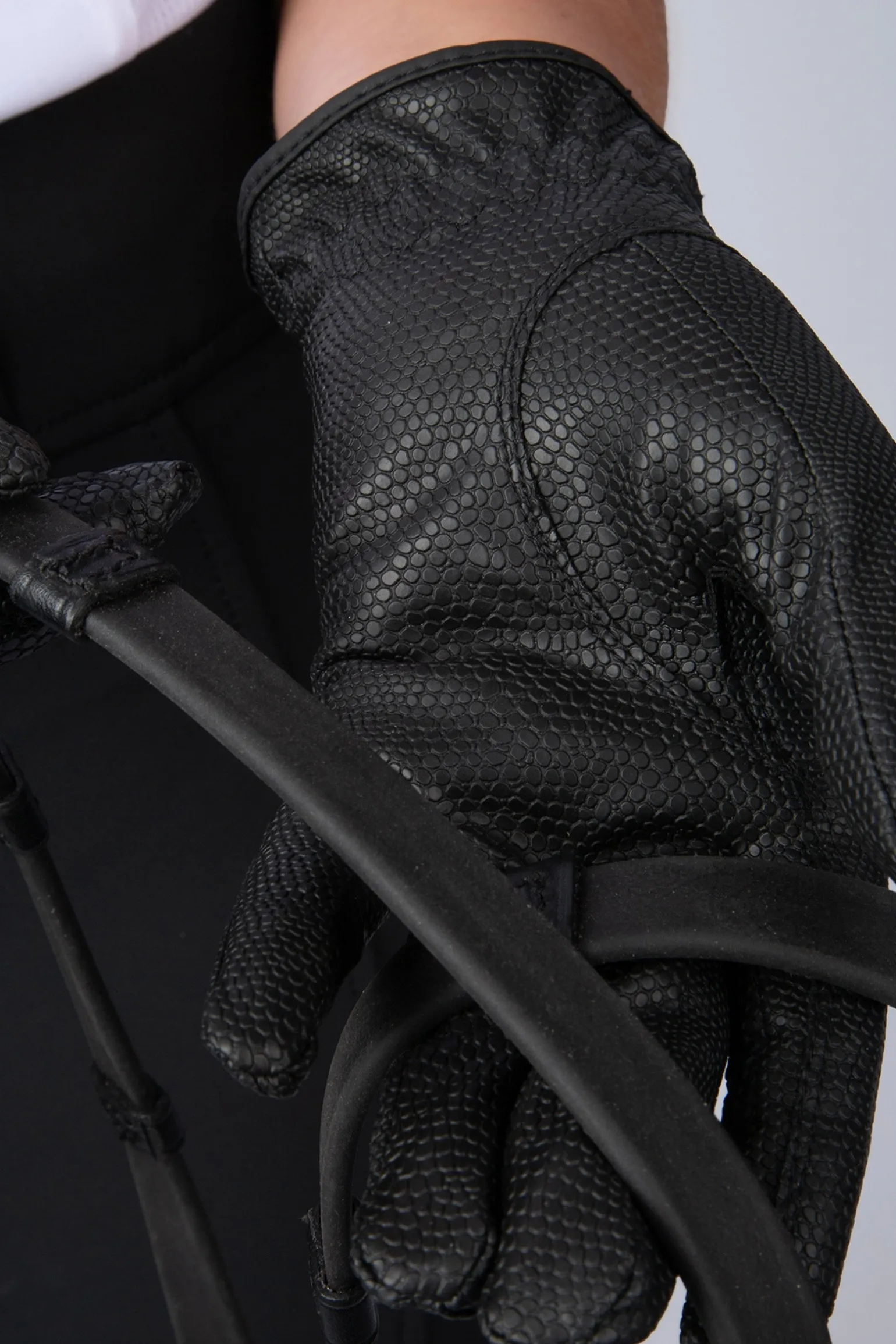 Grip gloves in leather imitation with a mini embossed croco pattern.