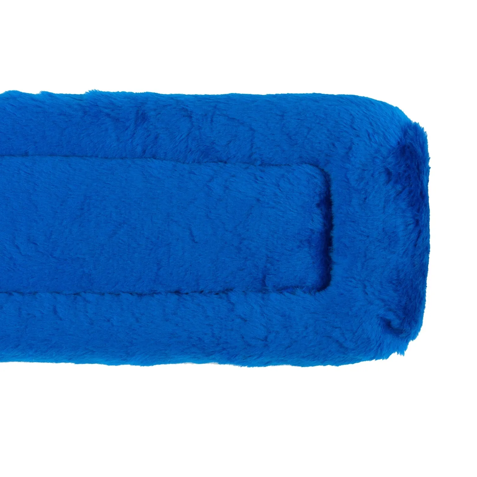 Die Gurtunterlage ist hergestellt aus synthetischem Teddy-Fell, mit Klettverschlüssen.