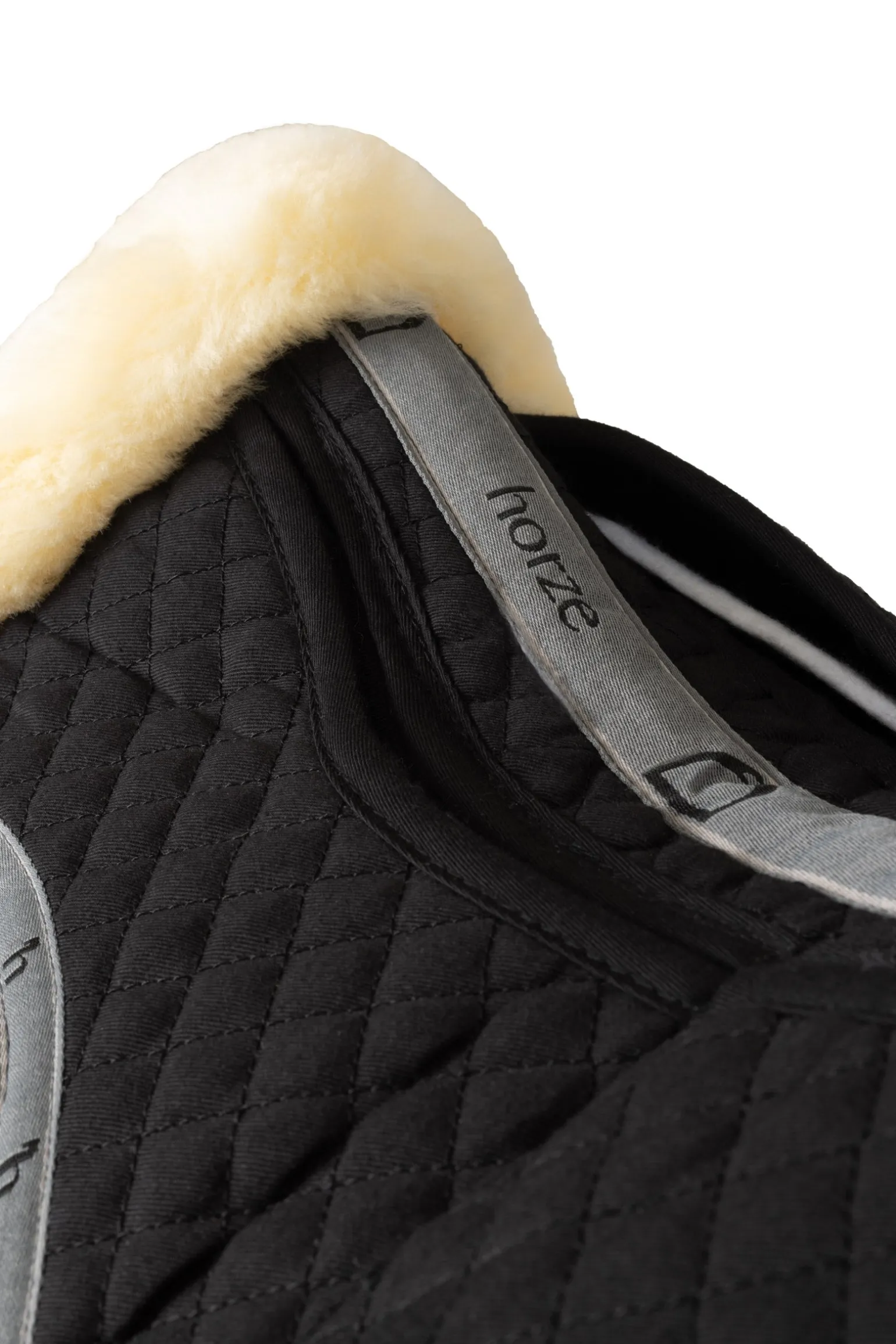 Mit einem gut sitzenden Sattel tust du deinem Pferd und auch dir etwas Gutes. Das Horze Crescendo Harleigh Korrektur-Pad behebt jegliche Probleme in der Passform des Sattels. Ein Sattel, der nicht richtig passt, verursacht Schmerze und sorgt für Druckstellen. Dieses weiche Lammfell-Pad ist am Widerrist hoch ausgeschnitten, um dort Druck zu vermeiden. Das schicke Pad ist stoßabsorbierend und atmungsaktiv. Es transportiert Feuchtigkeit vom Rücken ab und erlaubt dir somit jegliche Freiheiten beim Reiten.