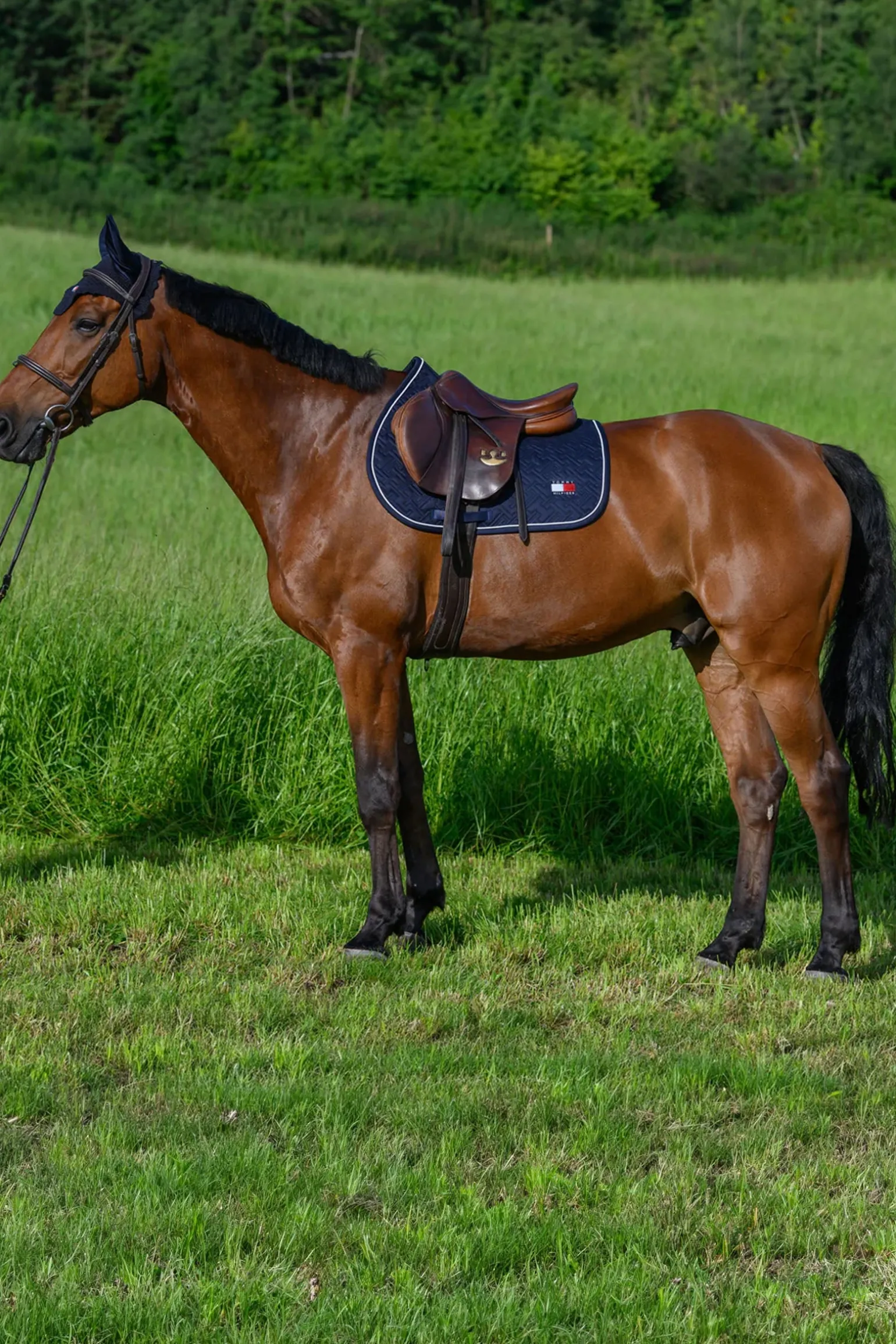 Die Tommy Hilfiger Equestrian Harvard Springschabracke vereint ikonischen Stil mit leistungsstarker Funktionalität. Mit ihrem gesteppten Design und einer Kontrastkordel bietet sie ein festes Erscheinungsbild, eine perfekte Passform und ein ausgewogenes Gewicht auf dem Pferd. Die gestickten Tommy Hilfiger Flaggenlogos auf beiden Seiten setzen ein markantes Highlight. Für optimalen Komfort sorgt das texturierte Futter mit Waffelstruktur, das atmungsaktiv ist und Feuchtigkeit reguliert – für bestmögliche Leistung bei jedem Ritt.