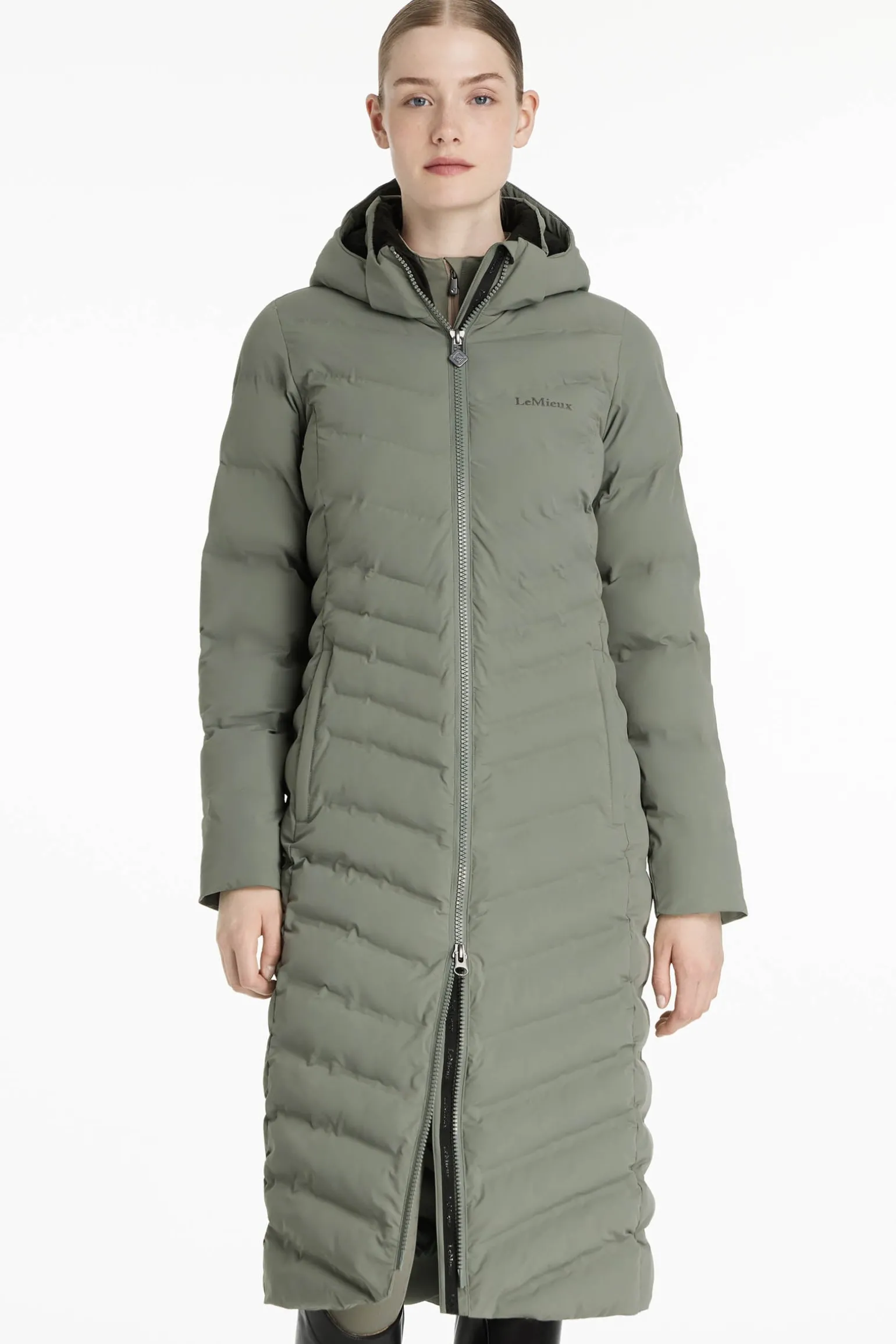 Profitiere von der neuesten hitzeverschweißten Stepptechnologie mit diesem wasserdichten, langen Steppmantel, den du problemlos beim Reiten tragen kannst. Das strapazierfähige, PFC-freie Material ist bis zu 10 000 mm wasserdicht, hält dem schlechtesten Wetter stand und bleibt mit einer MVP-Wert von 8 000 angenehm atmungsaktiv. Vollständig getapte Nähte um den Zwei-Wege-Reißverschluss verhindern das Eindringen von Nässe. Die wattierte Steppungen mit einer Füllung aus recycelter Repreve® Daunenfüllung sorgt mit Blick auf die Nachhaltigkeit für angenehme Wärme. Auf der Rückseite bedeckt ein halblanger Zwickel mit Schlitz deinen Sattel und die innen liegenden Beinschlaufen sorgen für eine schlanke Silhouette.