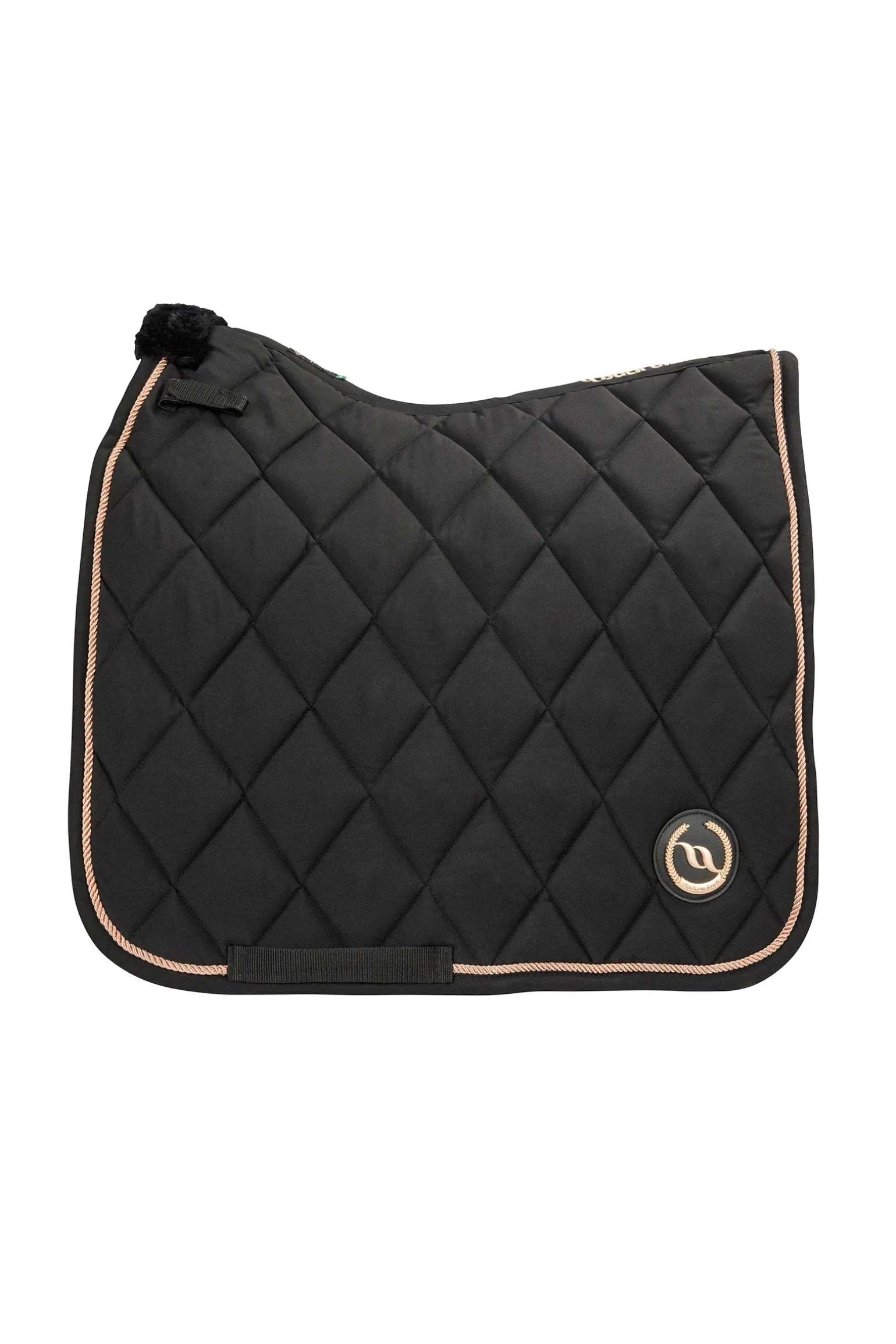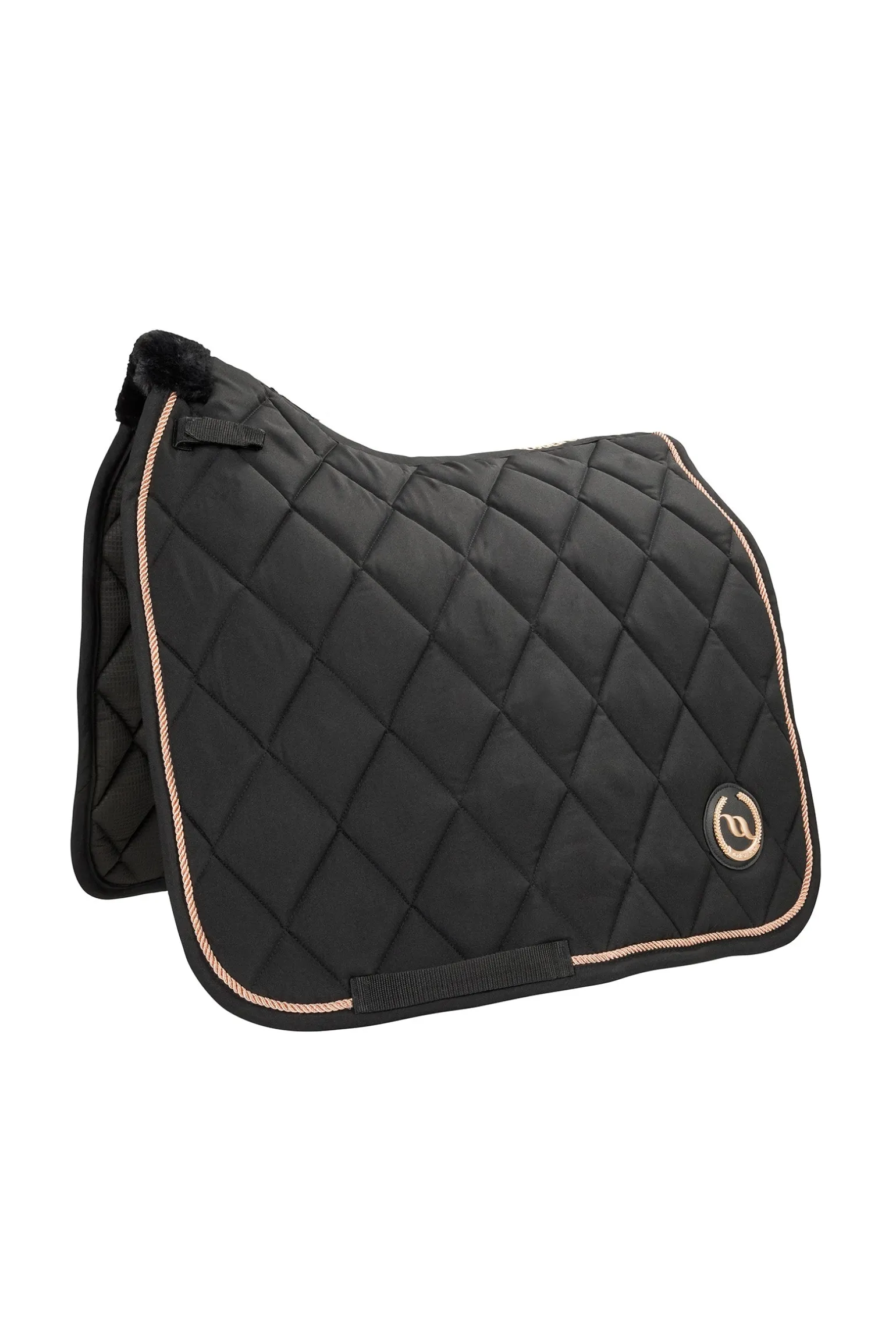 Kunstpelz über dem Widerrist und ausgestattet mit „D“-Ring-Befestigungsriemen. Hervorragende Atmungsaktivität und Feuchtigkeitsregulierung. Füllung aus hochwertigem Polyfill und stoßabsorbierendem Schaumstoff.