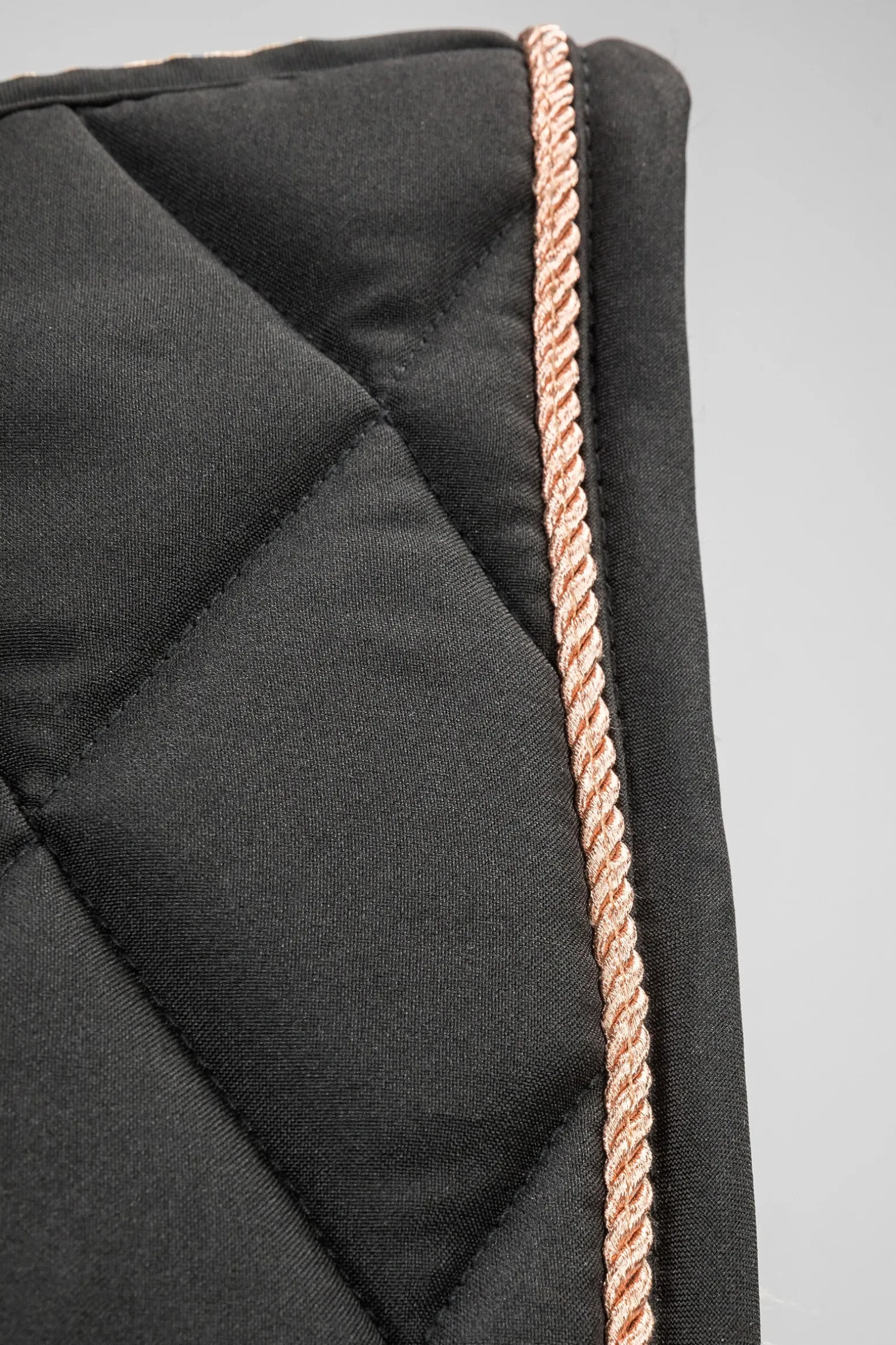 Die neue Schabracke aus einem schönen Melange-Stoff, erhältlich in den Farben Braun und Grau. Der Einfass ist mit einer eleganten Kordel abgesetzt. Auf der Linken Seite befindet sich das Back on Track Logo aus Kunstleder.