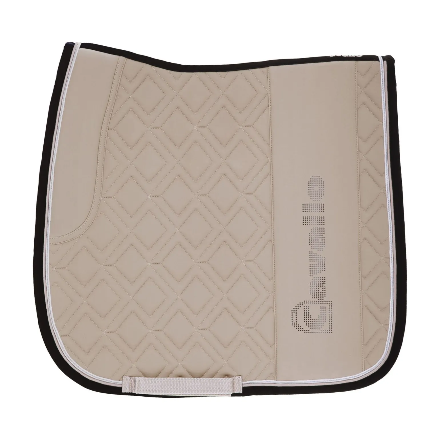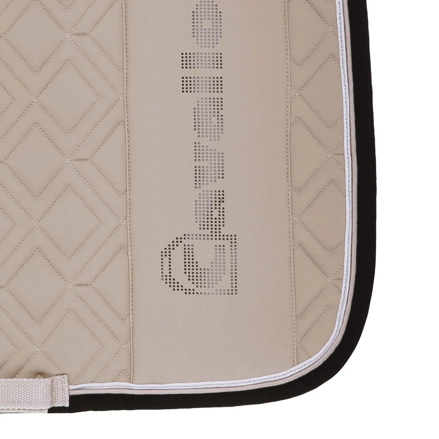 Eine sportliche Funktionsschabracke aus elastischem Softshell Material. Der Oberstoff aus Softshell ist besonders pflegeleicht. Allover mit Double Diamond Steppung versehen. Beidseitig an der Hinterseite mit einem vertikalen, glatten, tonalen Streifen versehen. Auf dem Streifen befindet sich ein perforiertes, großes, vertikales Cavallo Logo. Unter den Löchern des Cavallo Logos befindet sich schimmerndes Reflexmaterial. Die Verstärkung aus Memory Schaum an der Vorderseite gewährleistet eine optimale Lage unter dem Sattel. Eingerahmt wird die Schabracke von einem weißen Band mit schmalem silbernen Streifen. Das schnell trocknende und Feuchtigkeit transportierende Mesh-Futter ist besonders fellfreundlich und bietet höchsten Komfort. Eine formbeständige Wattierung ermöglicht der Schabracke eine perfekte Lage auf dem Pferderücken.