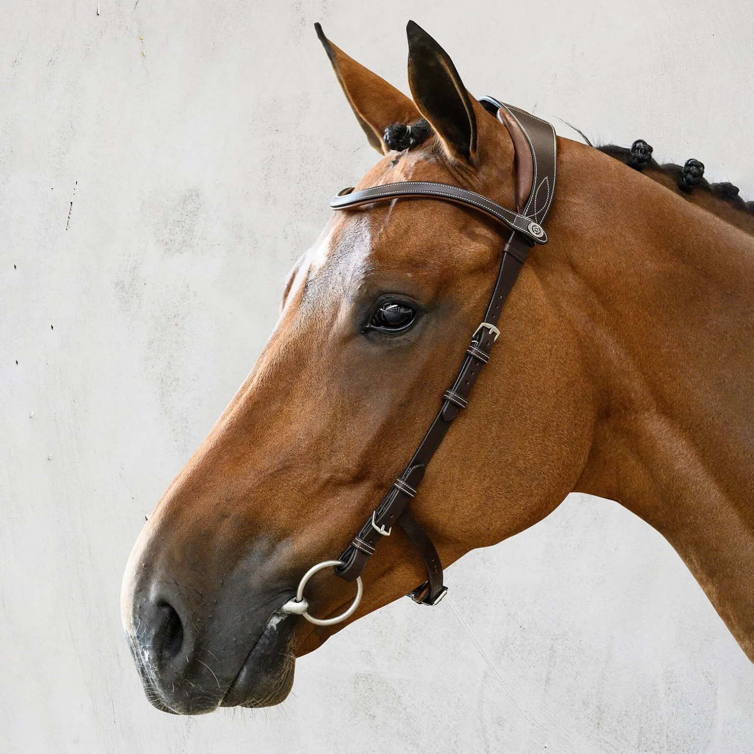 Die perfekte Trense für Tierarztkontrollen, Turniere und alle Anlässe, an denen ein Gebiss notwendig ist und es schön und praktisch sein soll. In der Mitte des Genickstücks befindet sich ein speziell eingearbeitetes Luftkissen für die optimale Schonung der empfindlichen Nervenbahnen und Muskelansätze in diesem Bereich. Der Ohrenausschnitt sorgt durch seine anatomische Form und die weiche Polsterung ebenfalls für ein besonderes Wohlbefinden des Pferdes.