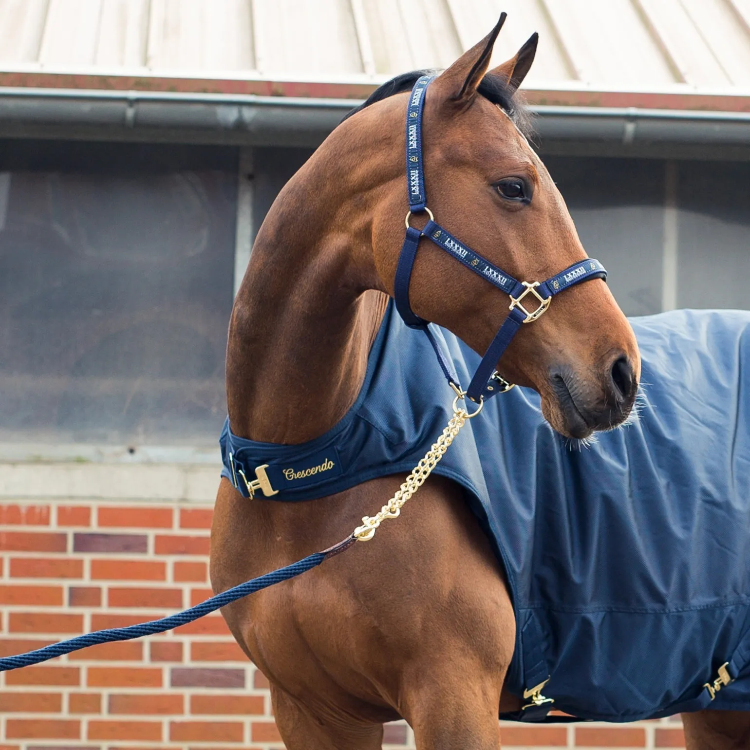 Gewebter Strick mit starker Kette, ideal für Turnier oder Stall.