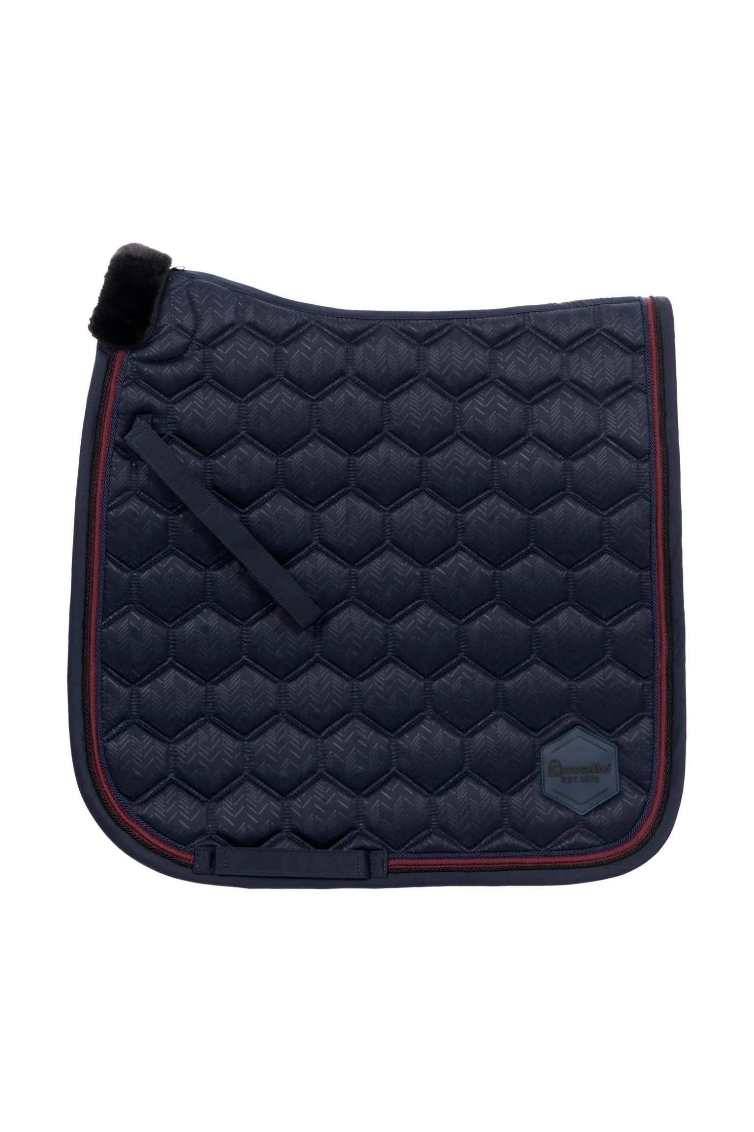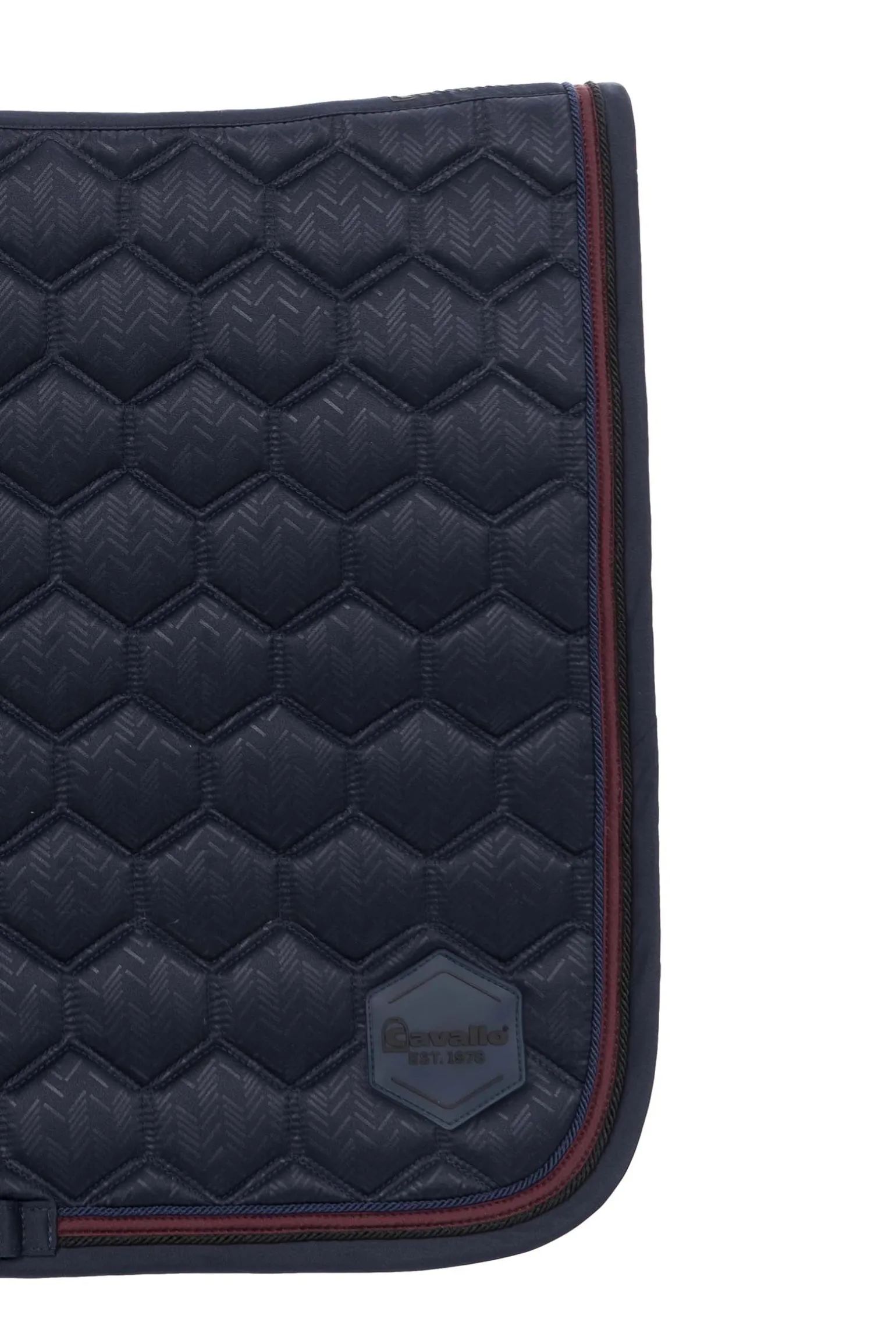 Eine sportliche Funktionsschabracke. Das mit einem Muster geprägte Obermaterial gibt der Schabracke einen besonderen Look. All Over mit einer Rautensteppung versehen. Ausgestattet mit einem Widerristpolster aus weichem Webpelz im Bereich der Sattelkammer. An den hinteren Ecken der Schabracke befinden sich tonige Cavallo Gummilabel. Eingerahmt wird die Schabracke von einem kontrastfarbenen Band, das umgeben ist von zwei schmalen Kordeln. Eine formbeständige Wattierung ermöglicht der Schabracke eine perfekte Lage auf dem Pferderücken. Die oberen und unteren Gurtstrupfen sind mit einem Klettverschluss zu fixieren.