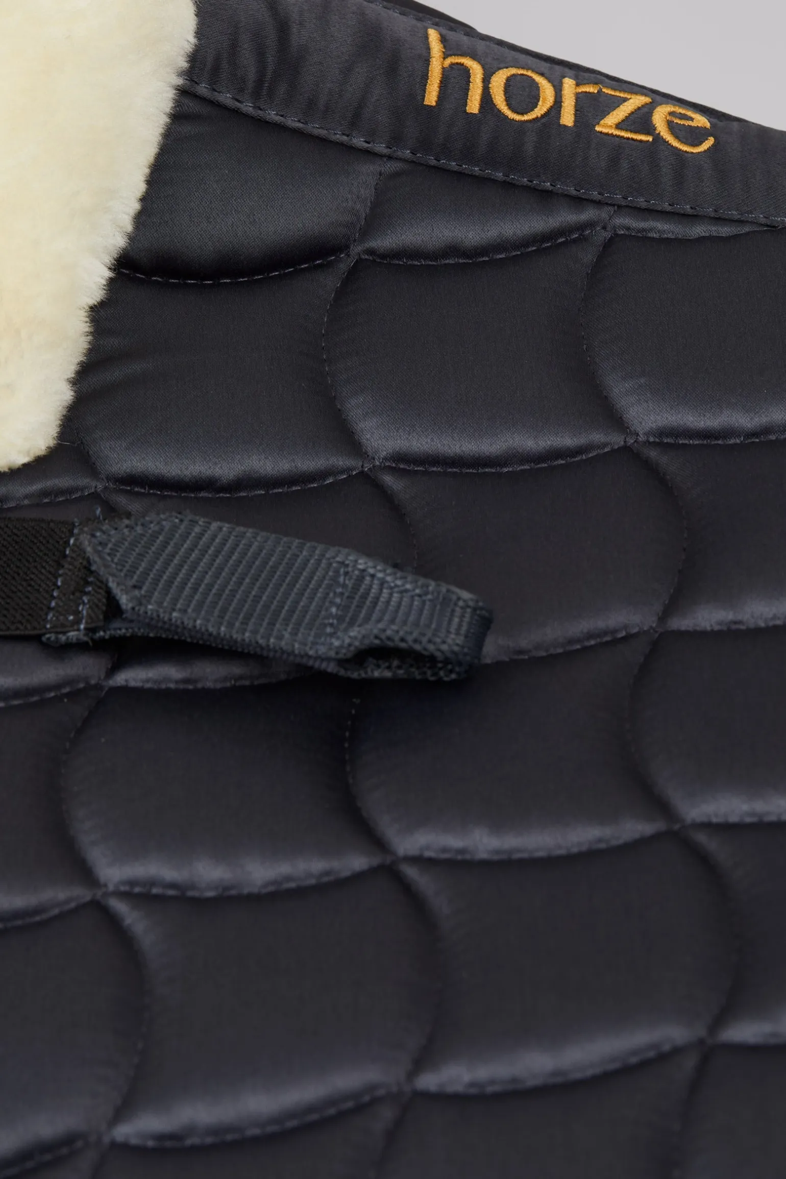 Die Horze Houston Schabracke ist mit einem atmungsaktiven Futter ausgestattet, das Feuchtigkeit ableitet. Die Wellensteppung sorgt für Komfort unter dem Sattel, und das Kunstfell am Widerrist ist besonders weich. Die gedeckten Farben sind zeitlos und passen gut zu deinem Sattelzeug. Diese Schabracke ist auch im Allzweckschnitt erhältlich. Kombiniere sie mit den Horze Houston Gamaschen für einen kompletten Look!