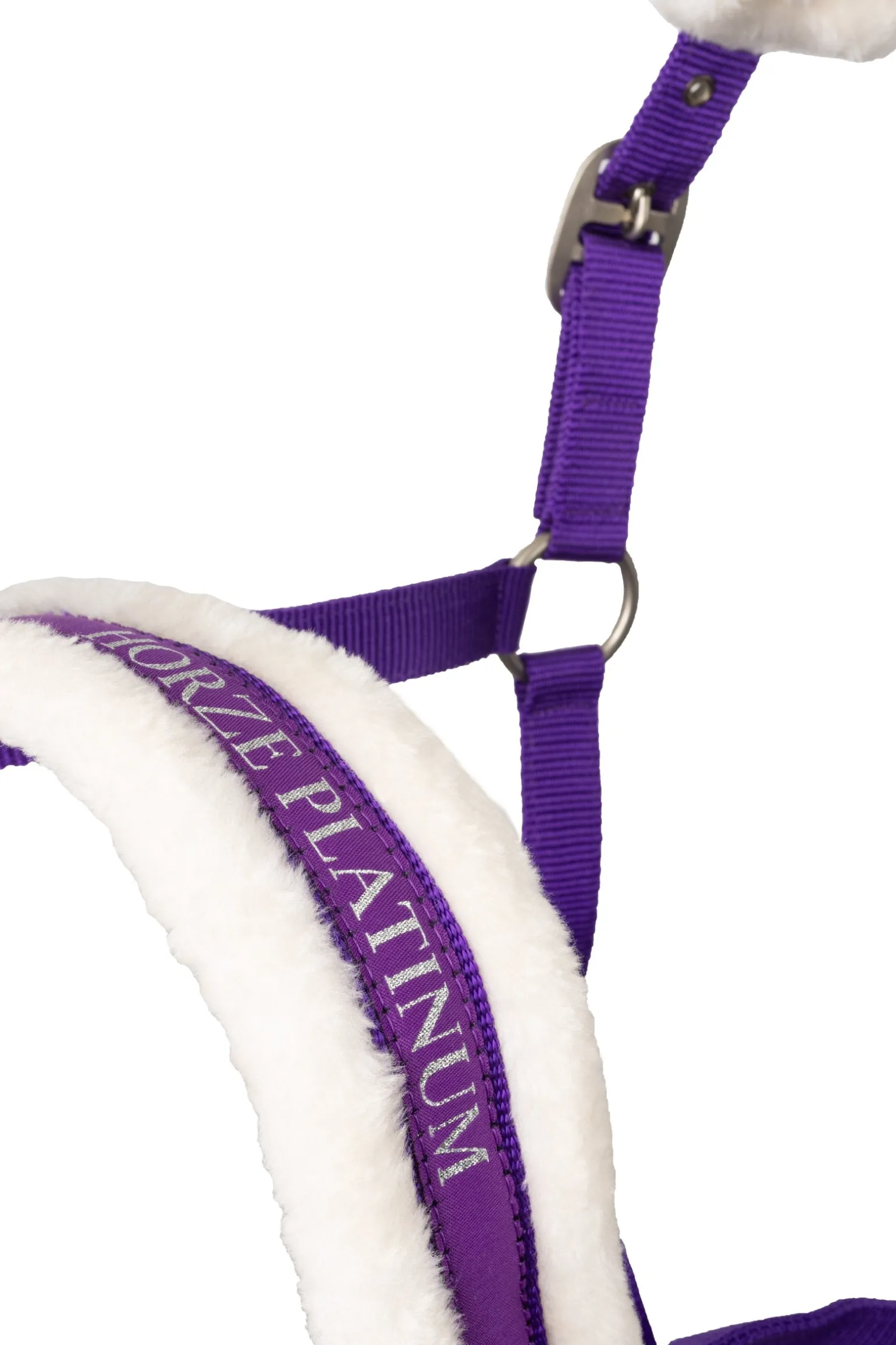 Das Horze Crescendo Howard Halfter hat eine weiche Fleece-Polsterung an Nasenriemen und Genickstück für mehr Komfort und einen einfachen Karabinerhaken am Hals für mehr Bequemlichkeit.