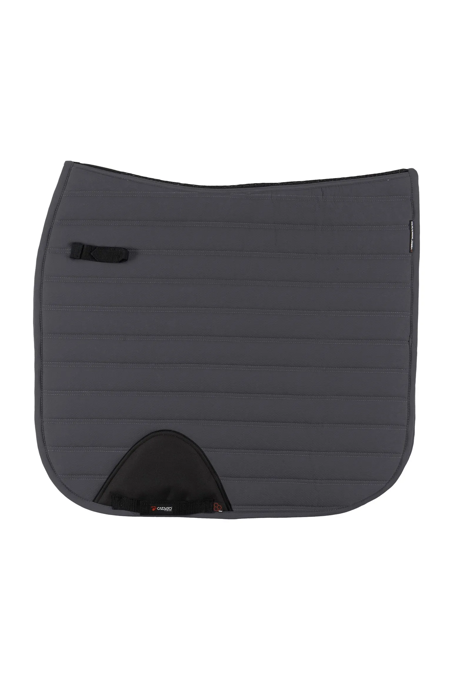 Die CATAGO Hybrid Schabracke besteht aus hochwertigen Funktionsstoffen und hat die bekannte Form einer CATAGO Schabracke, die ein Scheuern auf dem Rücken des Pferdes verhindert. Die Innenseite der Schabracke ist mit einem funktionalen Hybrid-Stoff mit Graphen Print Oberfläche überzogen. Durch das Graphen wird der Stoff thermoreguliert, so dass die Körperwärme des Pferdes gleichmässig über die gesamte Stoffoberfläche verteilt wird, um Kälteflecken oder Überhitzung zu vermeiden. Der Stoff ist ausserdem sehr atmungsaktiv und lässt überschüssige Wärme entweichen, wirkt antistatisch und antibakteriell. Der Graphen Print besteht aus Kohlenstoff-Fragmenten, die leitfähig sind und so die statische Aufladung vom Pferd / Fell ableiten. Der Netzkanal entlang der Wirbelsäule sorgt für zusätzliche Belüftung. Mit D-Ring-Laschen.