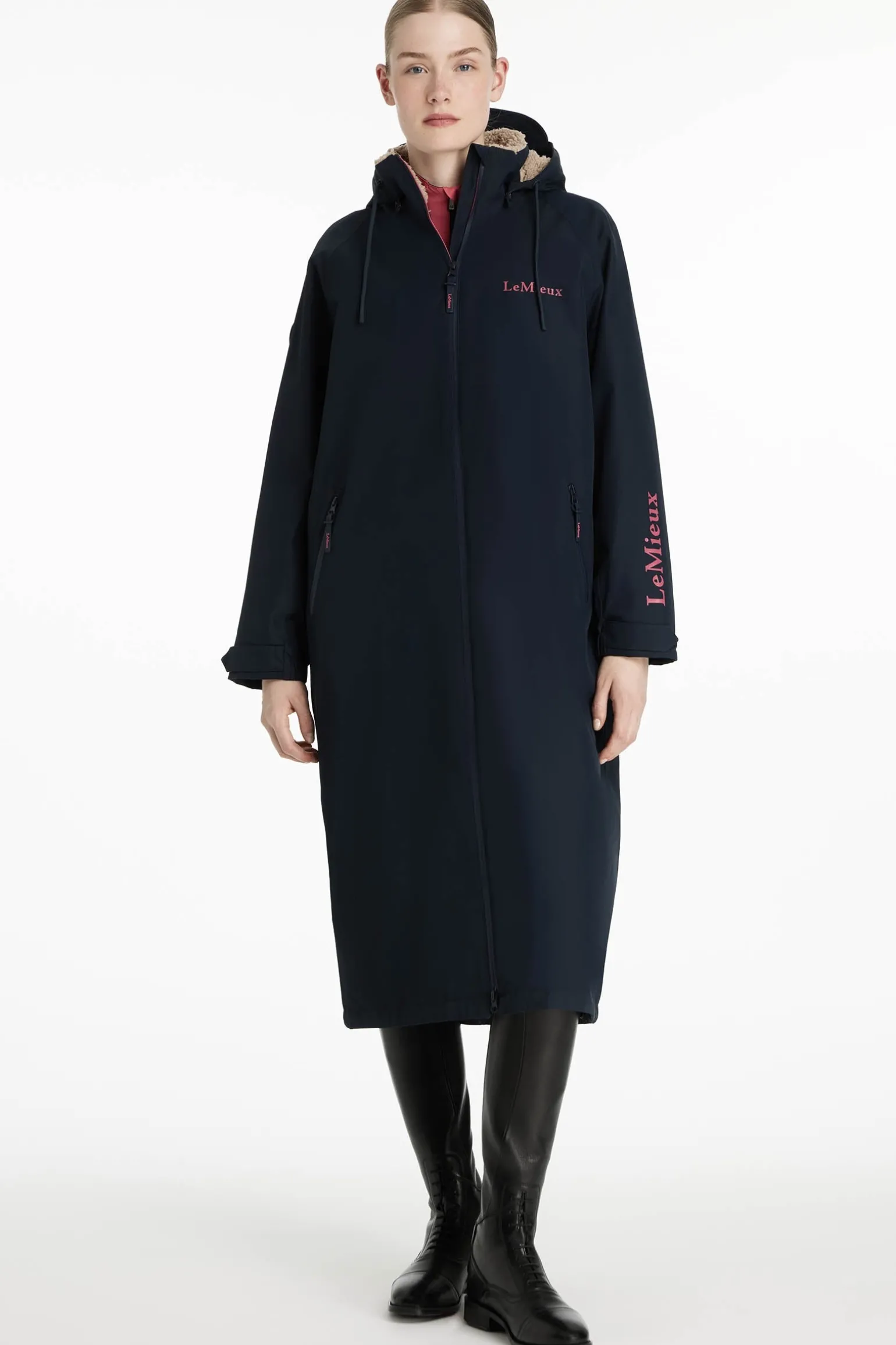 Schütze dich vor Sturm in diesem langen, wasserdichten Oversize-Mantel mit feuchtigkeitsableitendem Fleecefutter. Er ist groß genug, um ihn über andere Kleidung zu tragen und bequem genug, um ihn angezogen trocknen zu lassen – ideal zum Reiten, zum Überziehen und sogar für Besorgungen. Er ist bis zu 12.000 mm wasserdicht und verfügt über vollständig verschweißte Nähte, Windschutzbündchen innen sowie eine abnehmbare Kapuze. Das atmungsaktive Material hat einen MVP-Wert von 10.000 – ideal für intensives Arbeiten, ohne dabei zu überhitzen. In den tiefen Reißverschlusstaschen gibt es viel Platz, um deine Hände zu wärmen und Leckerlis zu verstauen. Ein Zwei-Wege-Reißverschluss vorne sorgt für Flexibilität, während der Saumschlitz hinten ein Tragen über dem Sattel ermöglicht. Das PFC-freie Außenmaterial ist langlebig und ideal für ein Leben mit Pferden. Mit dem auffälligen LeMieux Branding und all der Raffinesse, die du von LeMieux erwartest, ist dies die beste Möglichkeit, bei einem nassen Ausritt trocken zu bleiben oder zu werden.