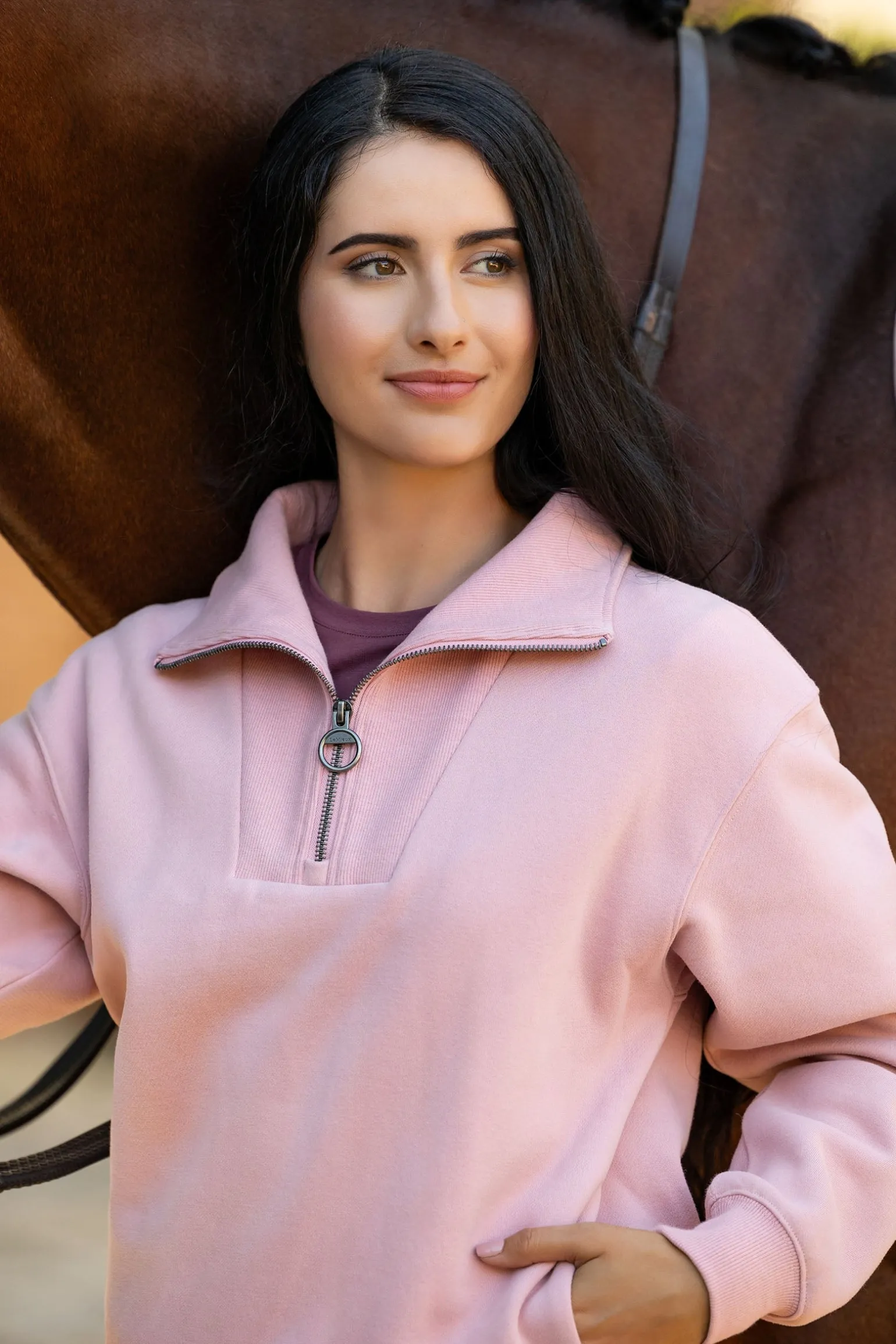 Der LeMieux Keira Quarter Neck Sweater vereint Komfort und Stil in einem entspannten Design.