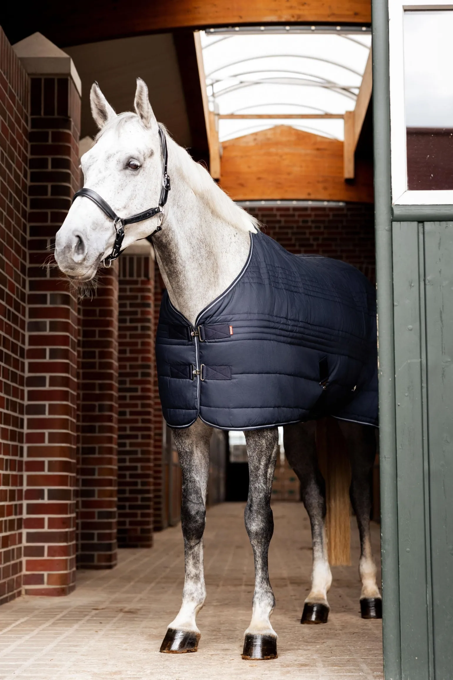 Die schwere Ausführung der Horze Kingsley Stalldecke liefert mit ihren 300 g an Füllung so viel Wärme, dass dein Pferd durch kälteste Wintertage kommt. Die doppelten T-Verschlüsse werden an der Vorderseite der Decke verschlossen, die Kreuzbegurtung und der Schweifriemen halten sie an ihrem Platz. Die Decke ist so robust, dass sie auch als Weidedecke verwendet werden kann!