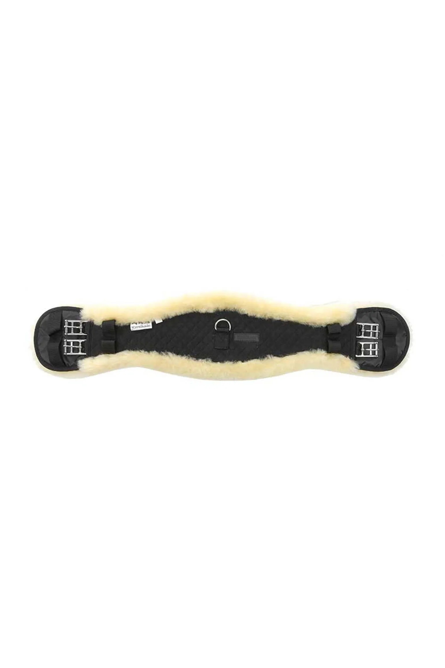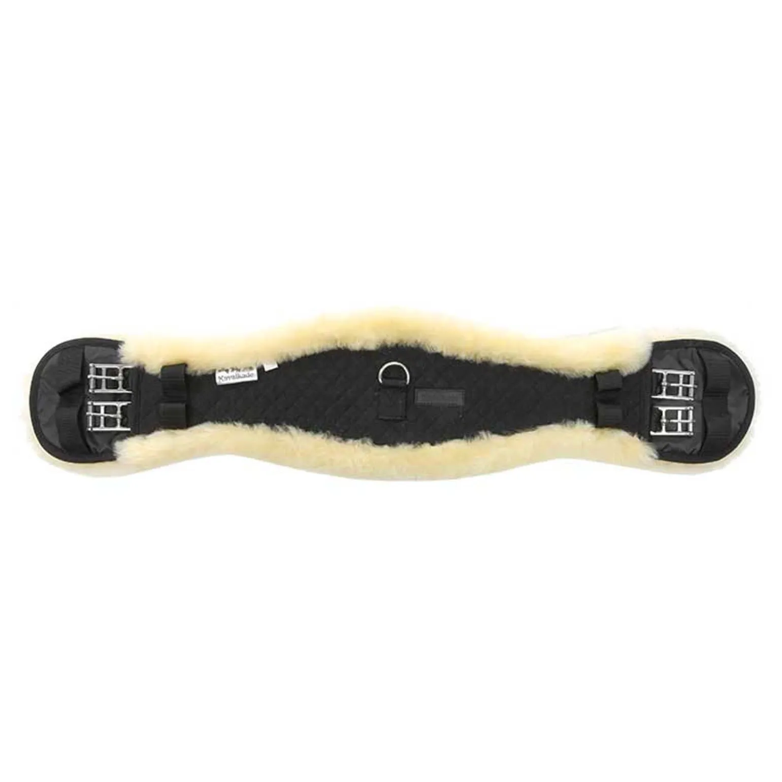 Anatomisch geformter Gurt mit echtem Lammfell. Die Verbreiterung in der Mitte sorgt für eine angenehme Druckverteilung, die Einschnürungen zu den Seiten hin geben mehr Ellbogenfreiheit.