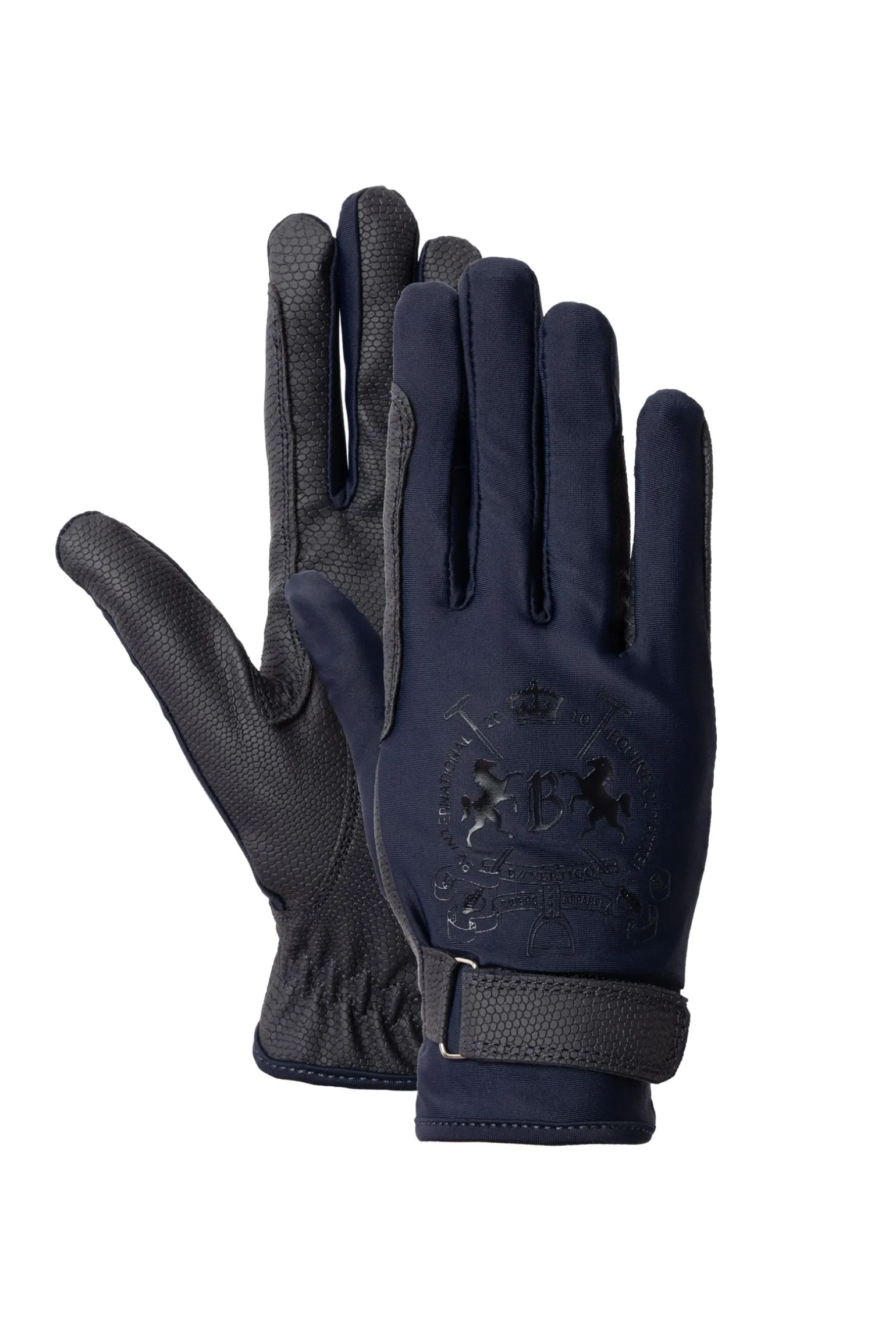Diese zeitlosen und eleganten Handschuhe sind das ganze Jahr über tragbar. Der dehnbare Stoff an der Oberhand macht sie angenehm zu tragen, während der Stoff an der Handfläche für einen guten Halt der Zügel sorgt. Ein verstellbarer Klettverschluss am Handgelenk fixiert den Handschuh in seiner Position. Abgerundet wird das Design durch ein zartes, Thermotransfer Logo auf dem Rücken beider Hände.