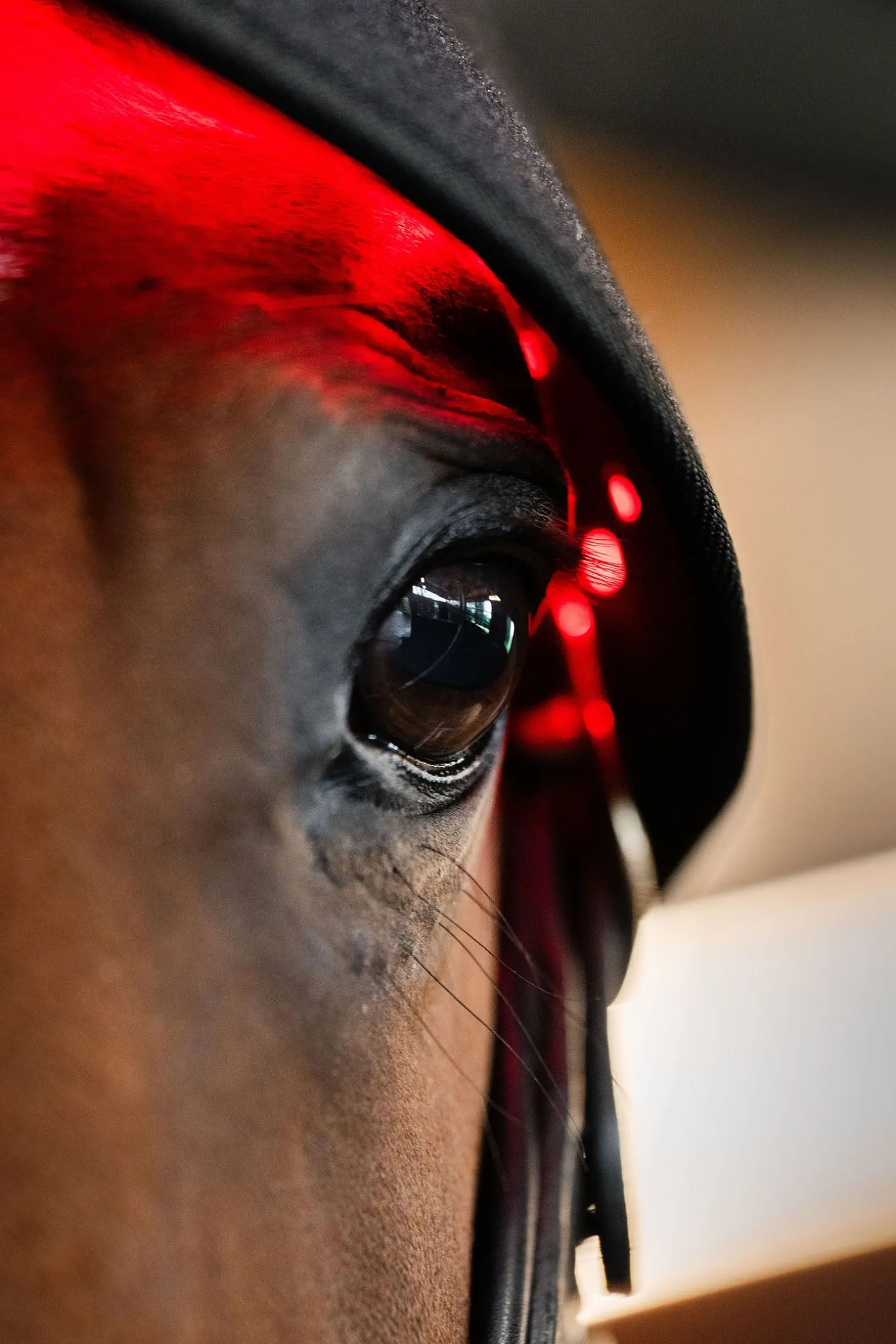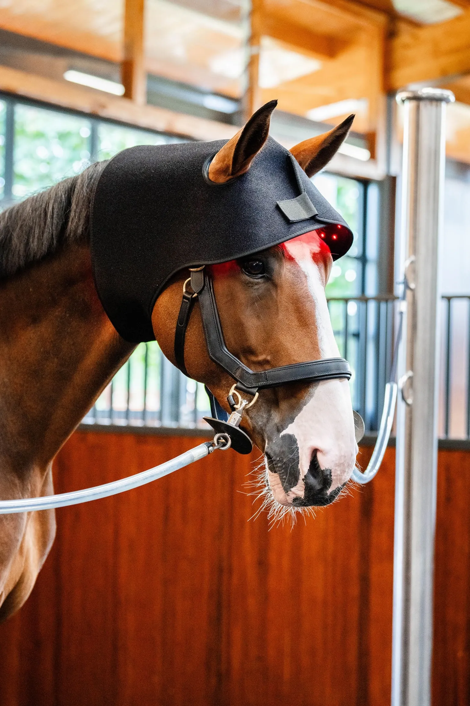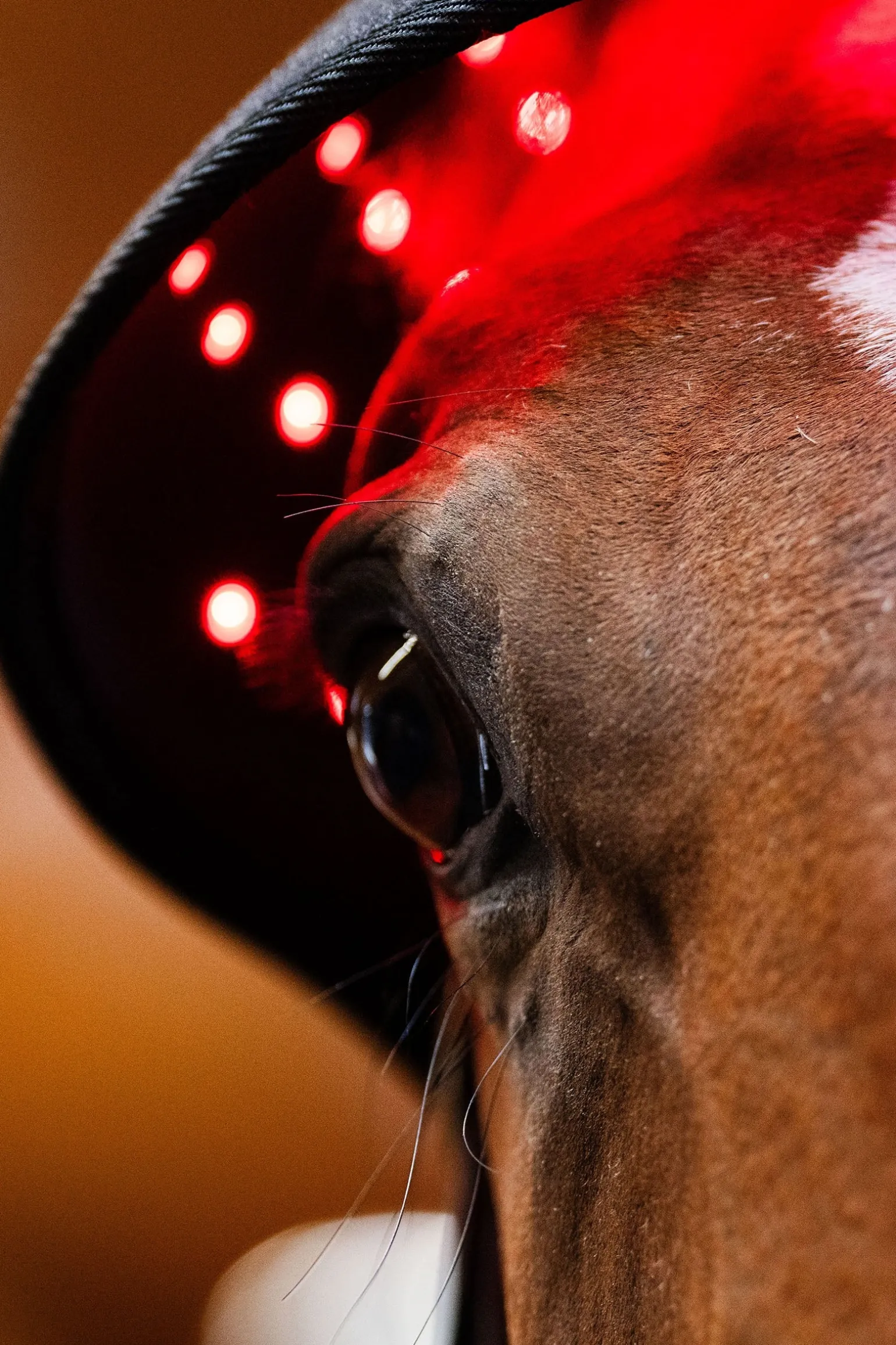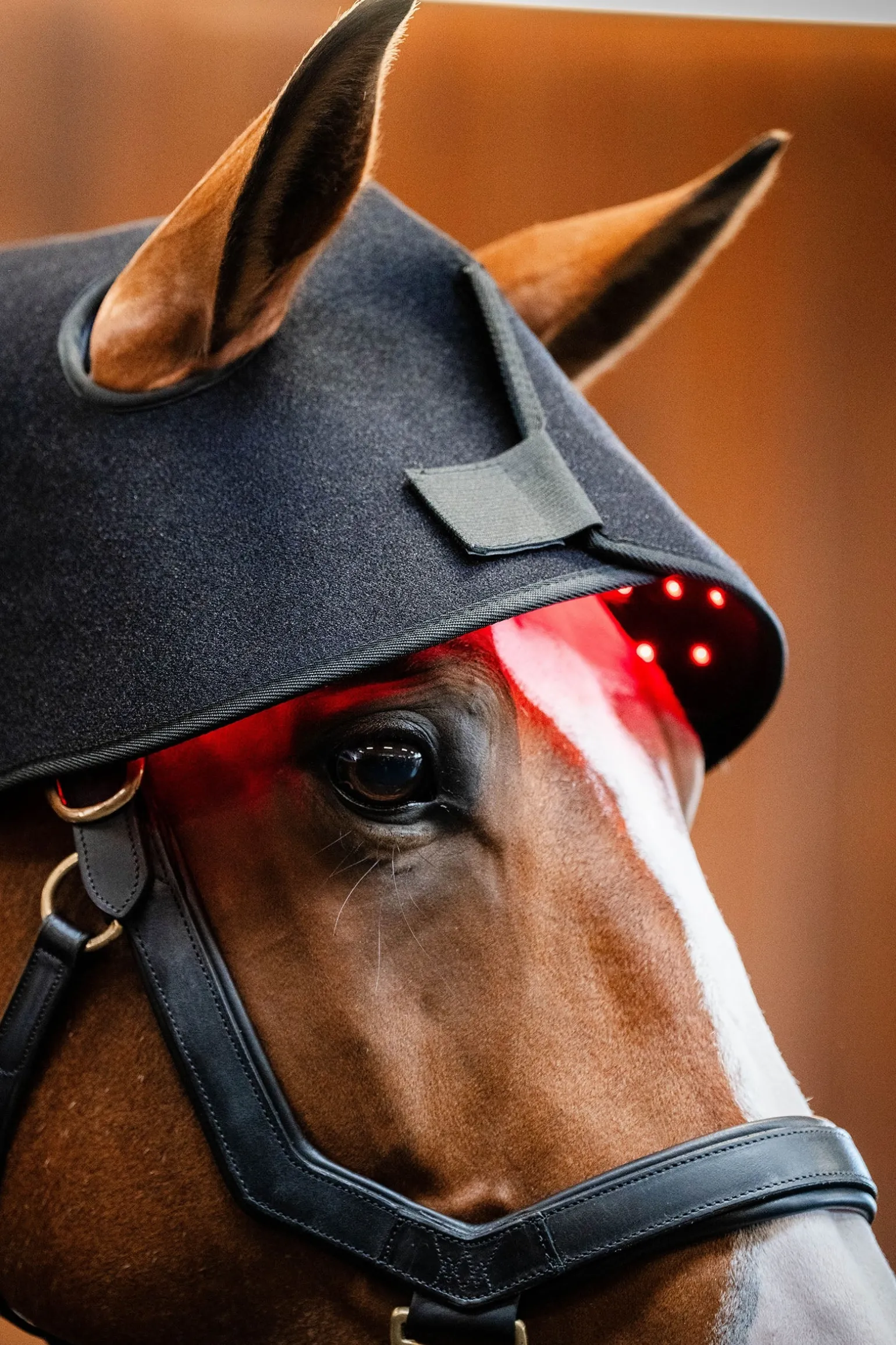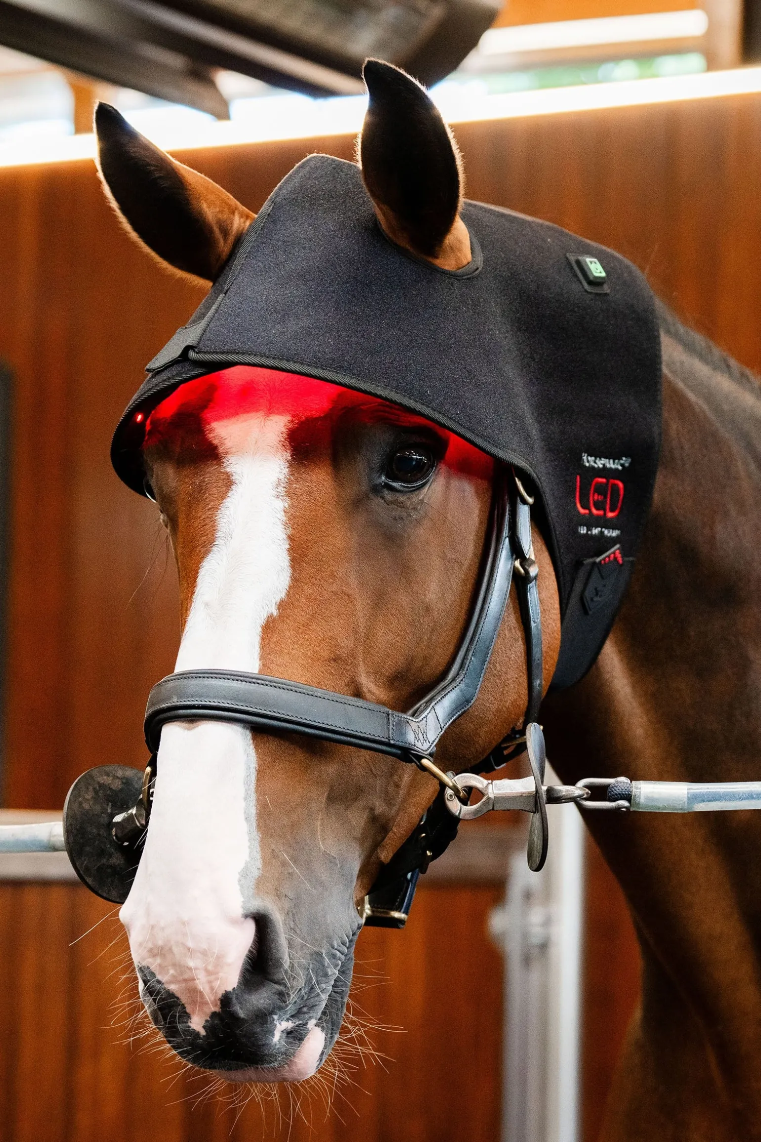 Die Horseware® LED-Rotlicht-Therapie Genickhaube enthält 230 LEDs, die verschiedene Wellenlängen kombinieren, um sowohl die Hautschicht als auch tiefere Gewebestrukturen zu erreichen. Ausgestattet mit drei Einstellungen und zwei Modi mit einem 15-Minuten-Timer: sowohl LED als auch Infrarot, nur rotes LED oder nur Infrarot, im konstanten oder pulsierenden Modus. Die Pulsfunktion kann die Wirkung der LED verstärken.