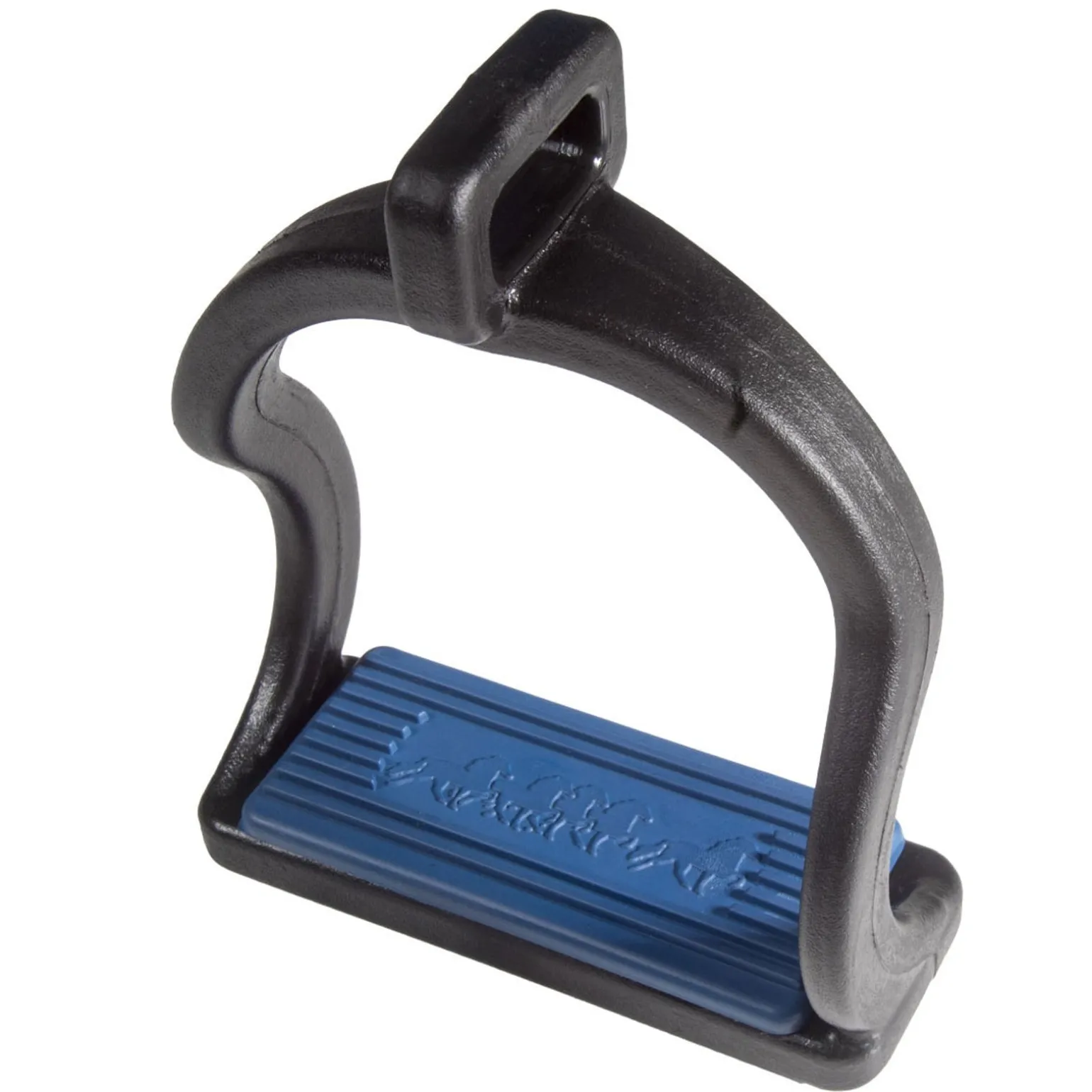 Doppel-S-Sicherheits-Steigbügel aus ein fortschrittliches synthetisches Polymer. Gummi pads mit töltende Pferde. Einfaches elegantes Design mit geringem Gewicht.