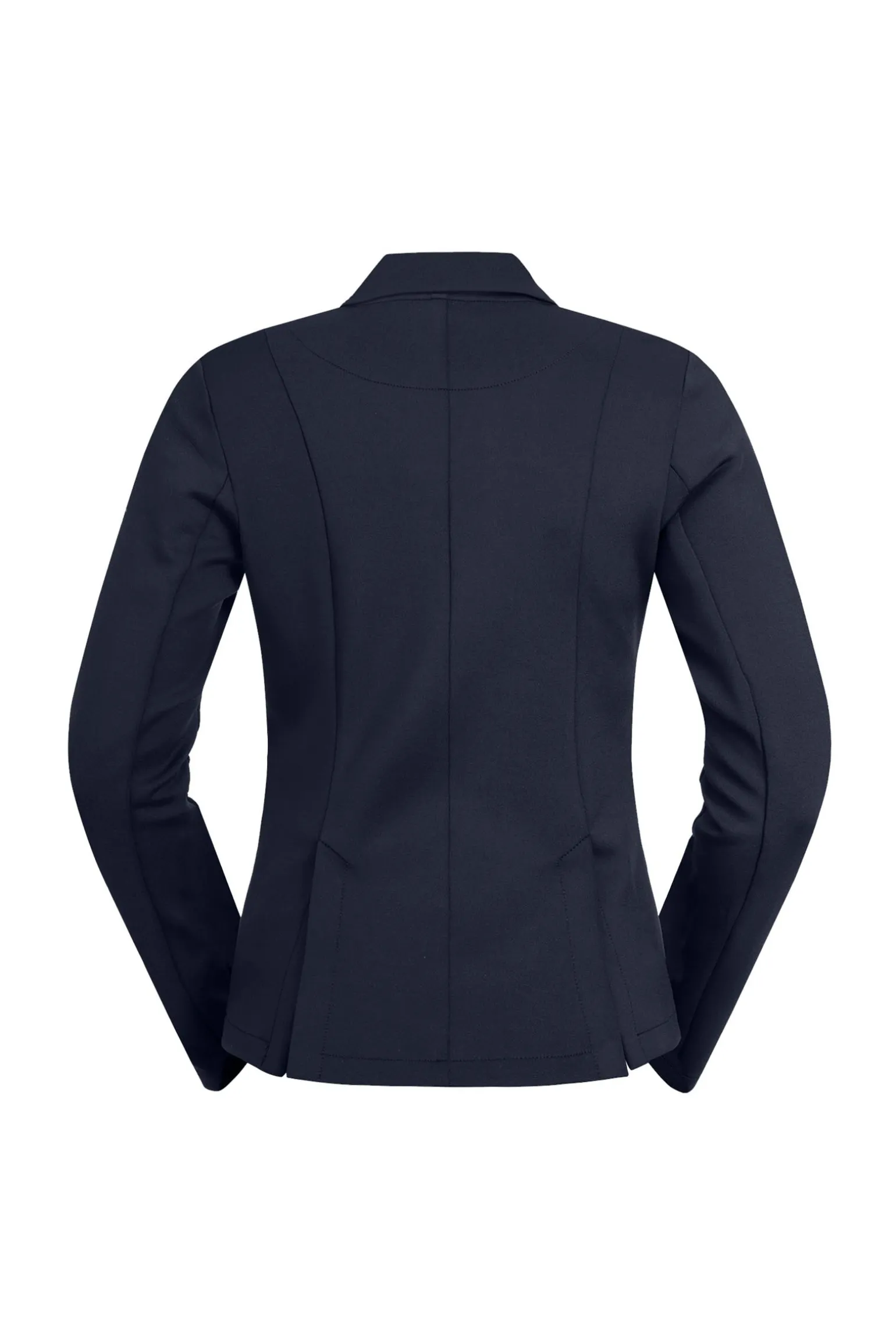 Dieses modische Turnierjacket von ELT bietet mit seinem atmungsaktiven und elastischen Material optimale Bewegungsfreiheit. Es verfügt über zwei praktische seitliche Eingrifftaschen und einem Reitschlitz auf der Rückseite. Seine taillierte Passform und die dekorativen Strasssteine an den Taschen machen es zu einem echten Hingucker.