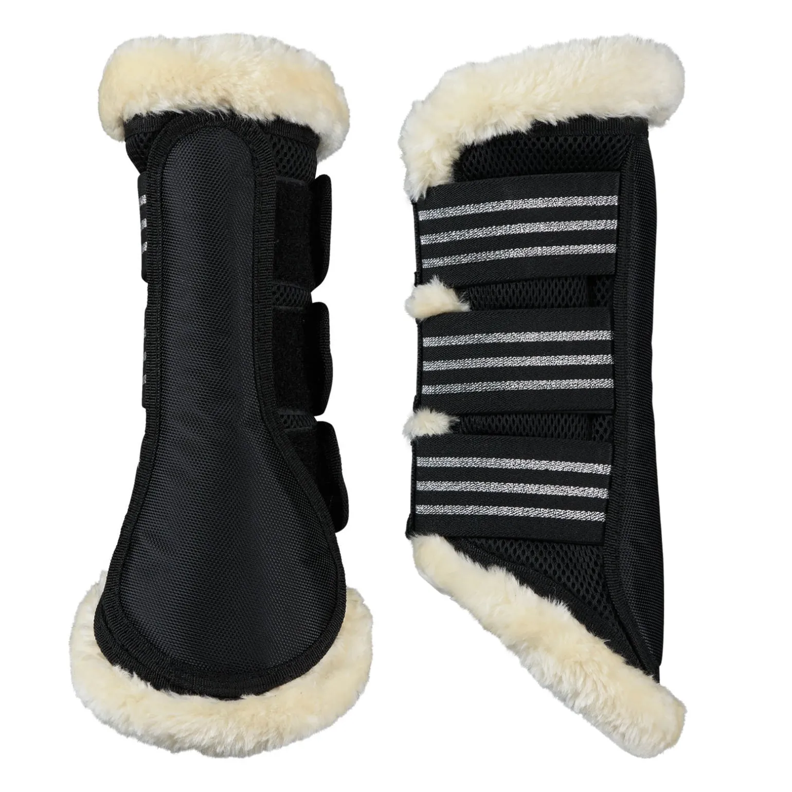 Die Horze Lincoln Gamaschen sind mit funktionellem Neopren gefüttert und mit weichem Kunstfell besetzt. Stabile Klettverschlüsse halten sie an Ort und Stelle. Kombiniere sie mit der Lincoln Schabracke (#17396 oder #17346) für einen kompletten Look.