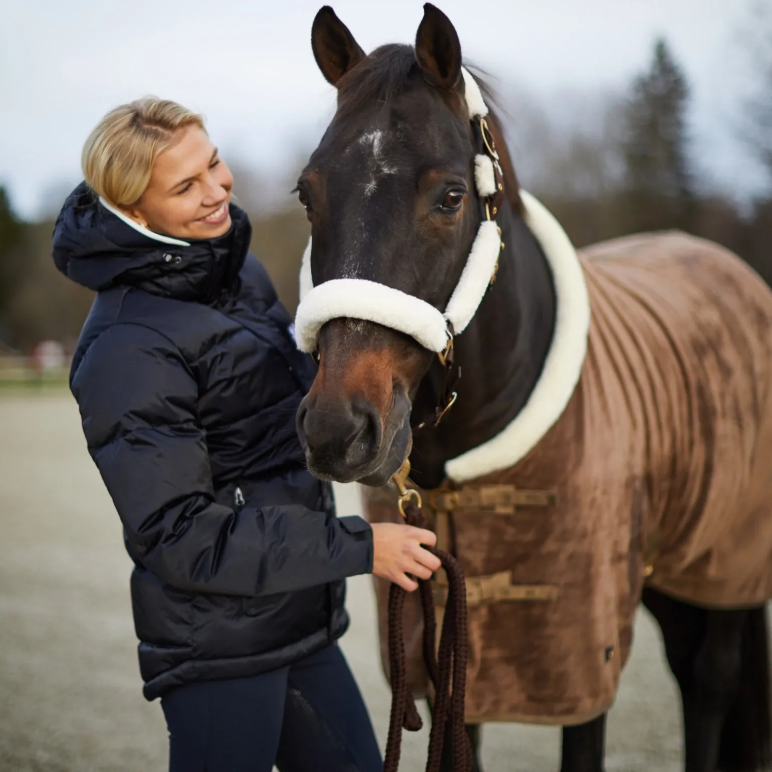Das Horze Lincoln Halfter ist in superweiches Kunstfell gehüllt, das sich besonders an den empfindlichen Stellen des Pferdekopfes angenehm anfühlt. Es kann mit einem Karabinerhaken geschlossen werden und ist mit schönen goldenen Beschlägen ausgestattet. Kombiniere es mit dem Lincoln Führstrick (#22606) für einen kompletten Look.
