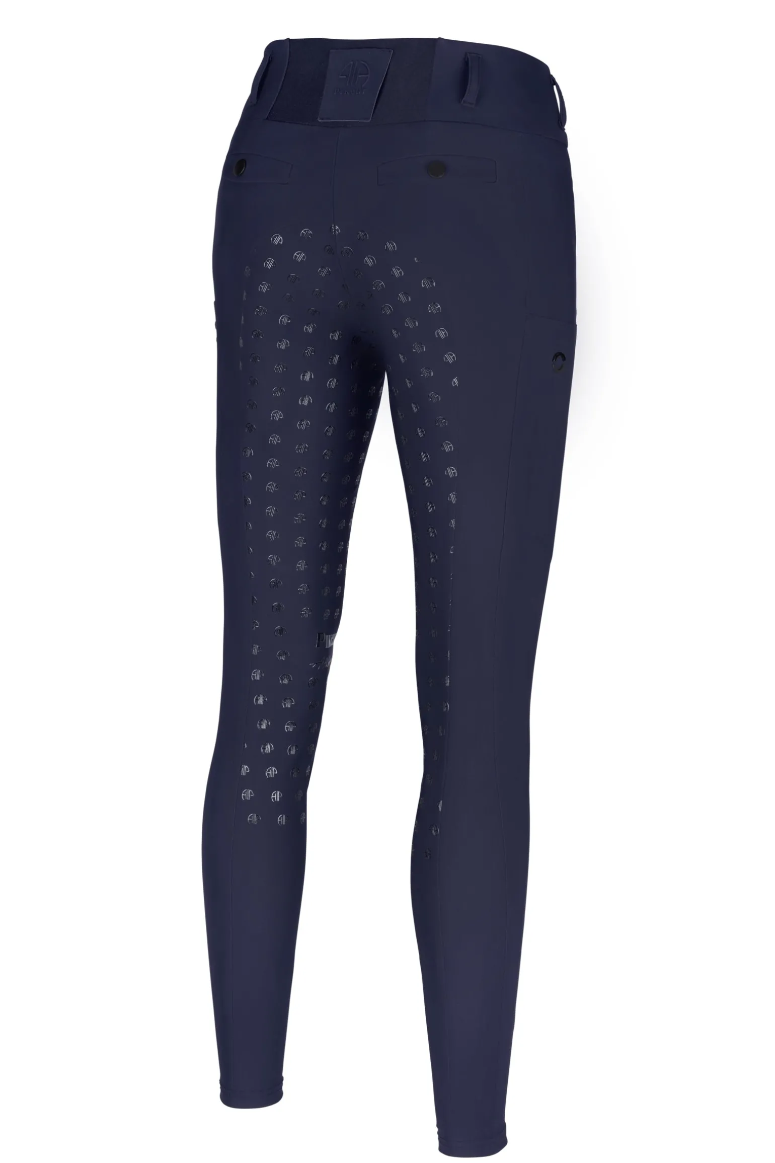 Diese Reithose besteht aus 4-Wege-Stretchstoff mit modellierendem Effekt und verfügt über versiegelte elastische Nähte für höchsten Tragekomfort und Haltbarkeit. Ohne Knienaht gestaltet, besitzt sie einen Bund aus Obermaterial mit Gürtelschlaufen und einen elastischen Einsatz für eine flexible Passform. Weitere Details sind der Beinabschluss mit Kante, schräge Taschen und stilvolle Fake-Klappentaschen mit Druckknopf. Mit Handytaschen auf beiden Seiten und einem Screenprint-Patch im Athleisure Design vereint diese Reithose Funktionalität mit modernem Look.
