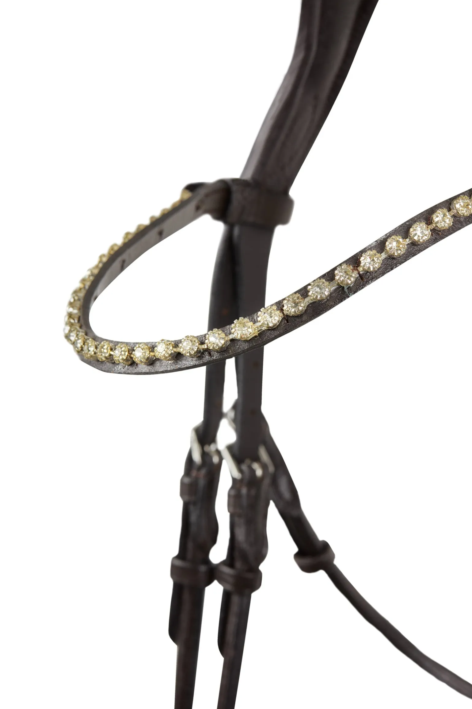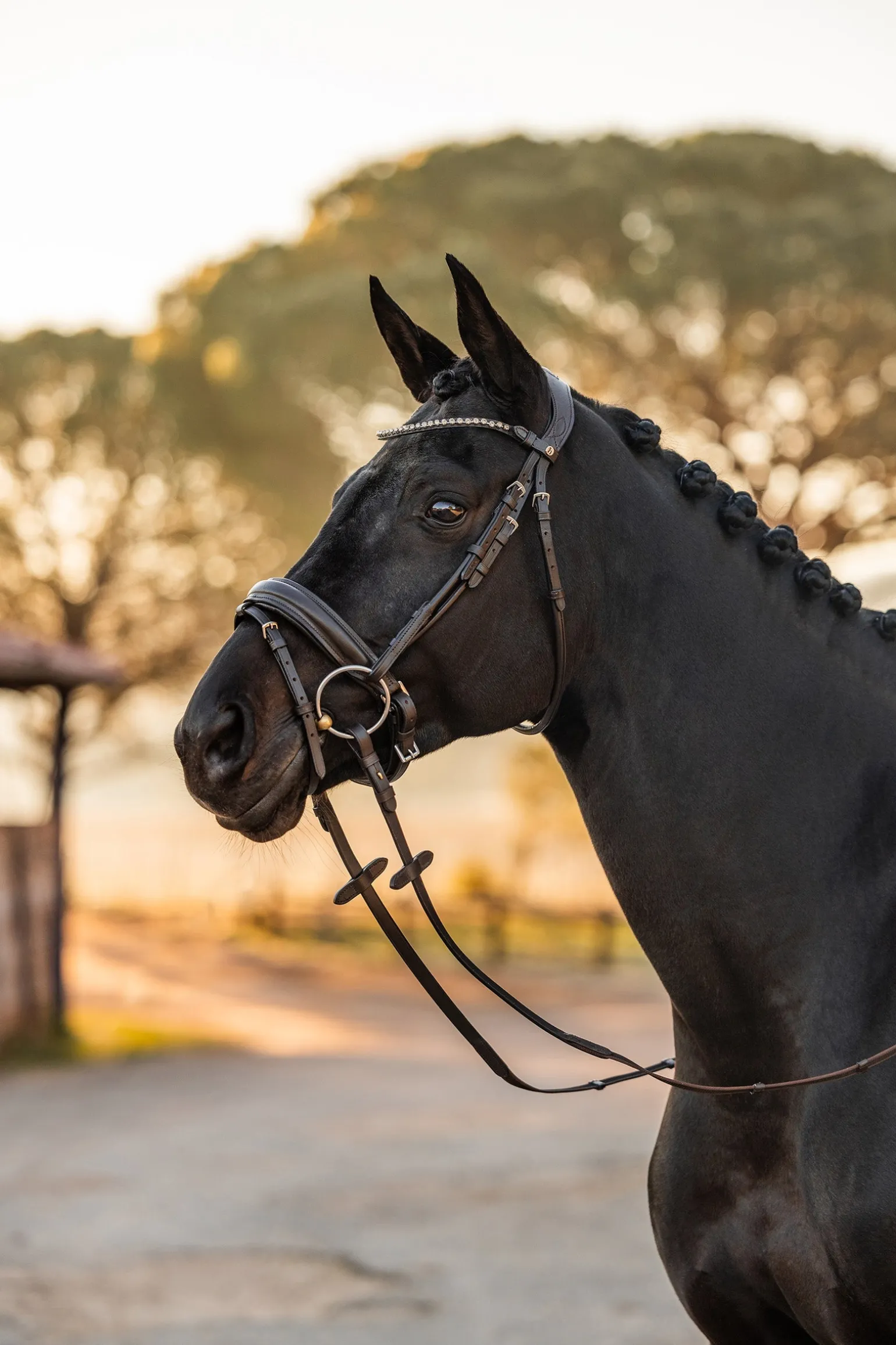 Die Horze Lockhart Trense ist anatomisch geformt, damit der empfindliche Kopf deines Pferdes keine unangenehmen Druckstellen hat. Die verstellbaren Schnallen sorgen für den perfekten Sitz. Der abnehmbare Stirnriemen ist leicht zu wechseln. Das weiche Leder ist sehr langlebig und bietet größten Komfort.