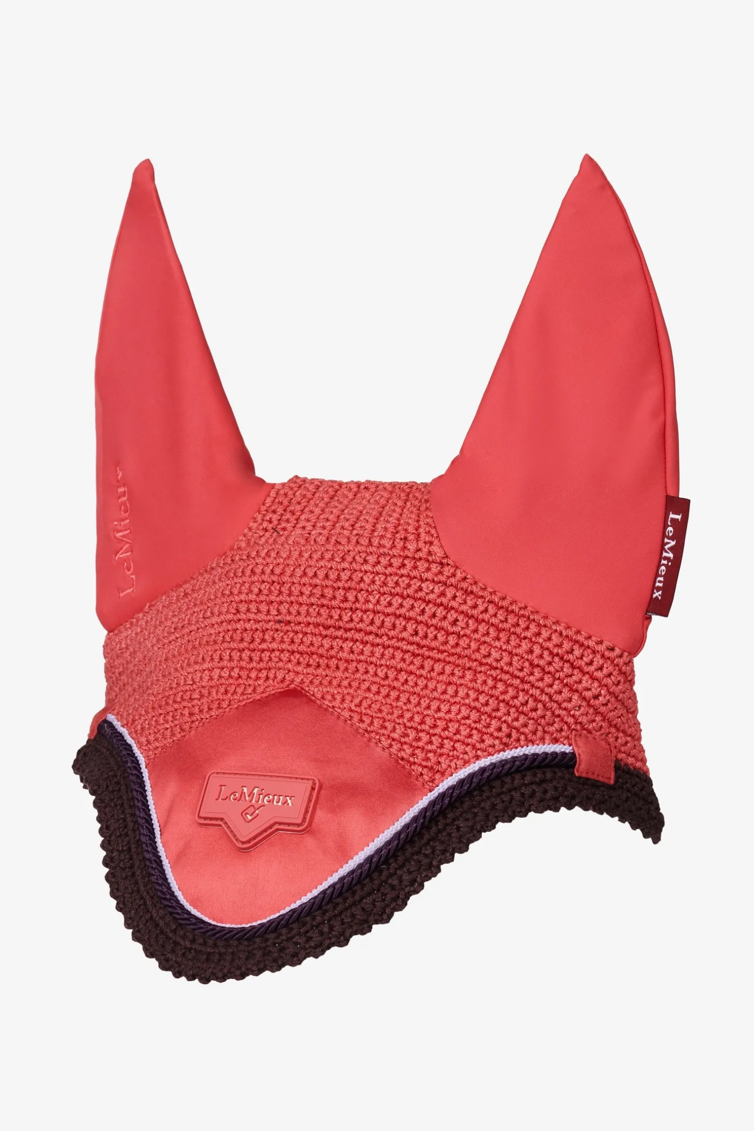 Wunderschön gearbeitet, aus dreifach gestrickter Häkelarbeit mit luxuriösem Satin vorn und Ohren aus Softstretch-Lycra.